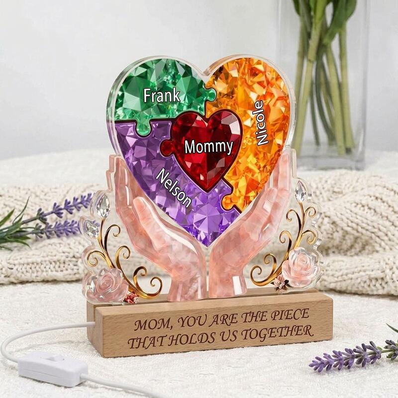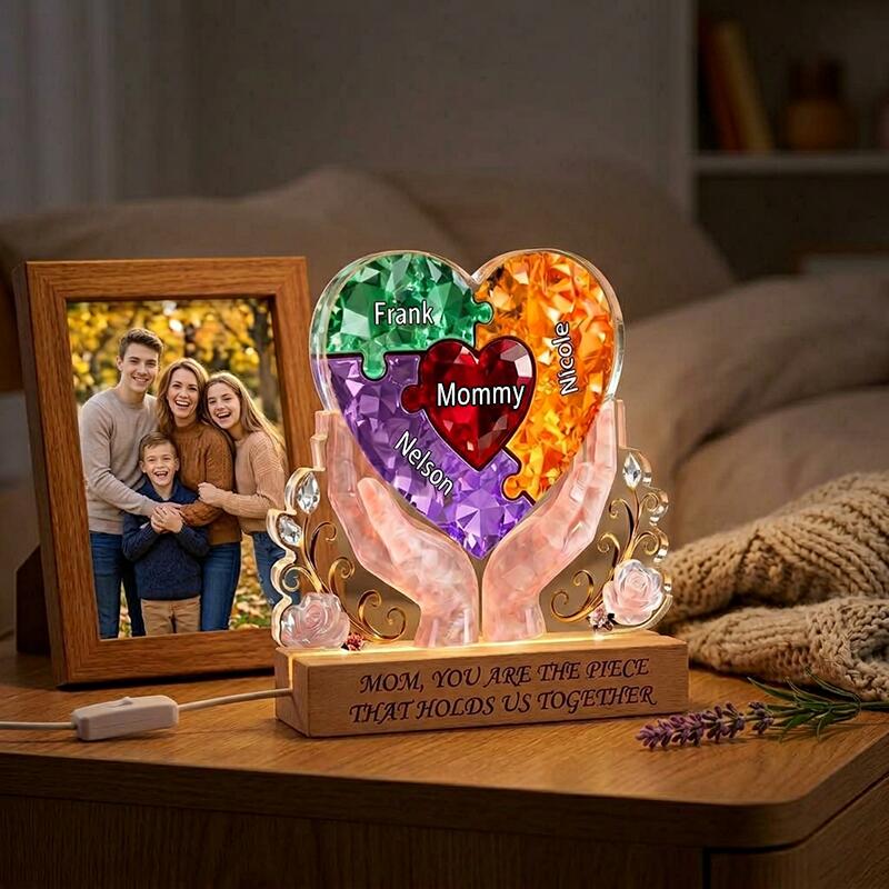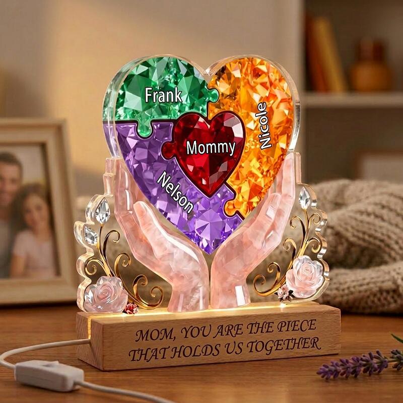 Personalized Mom Puzzle Heart Night Light – A Custom Keepsake That Celebrates Your One-of-a-Kind Bond
