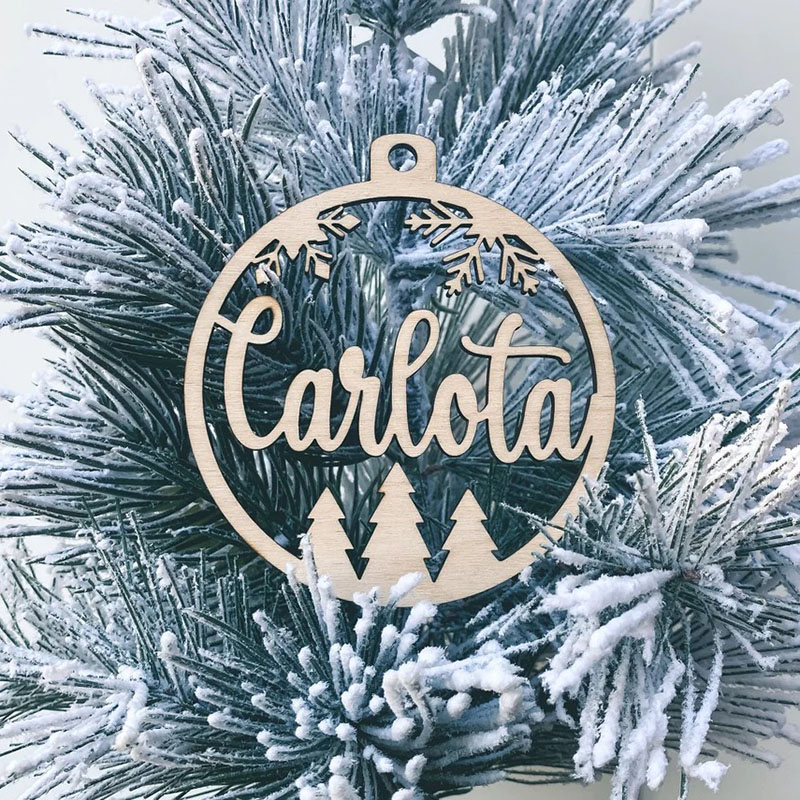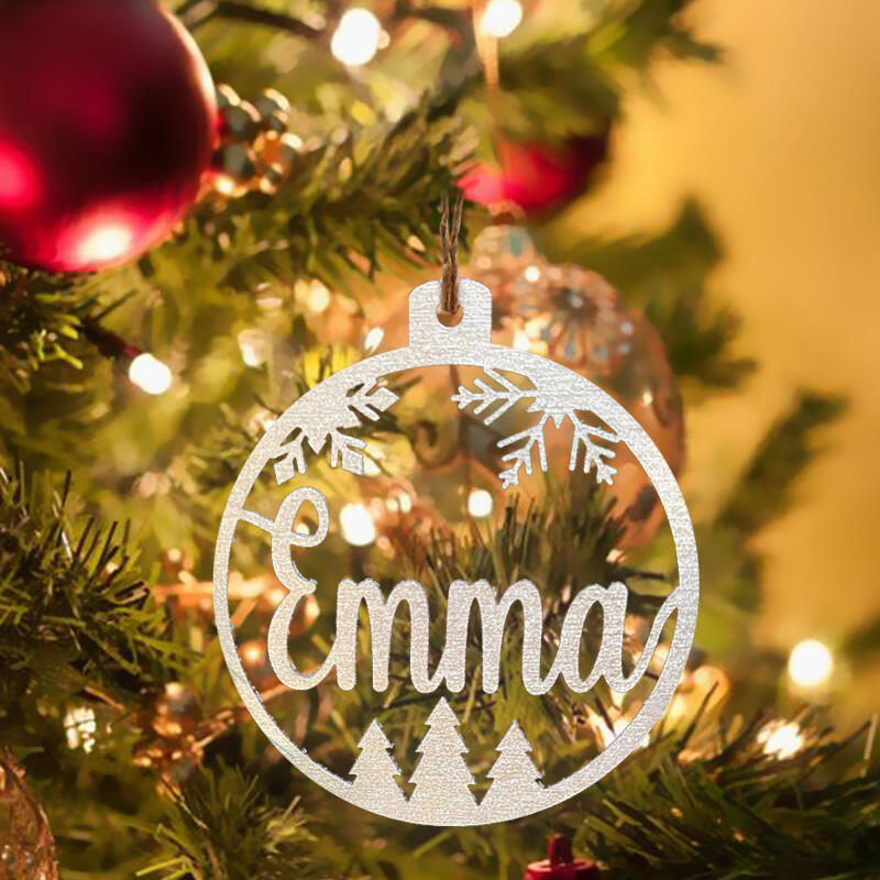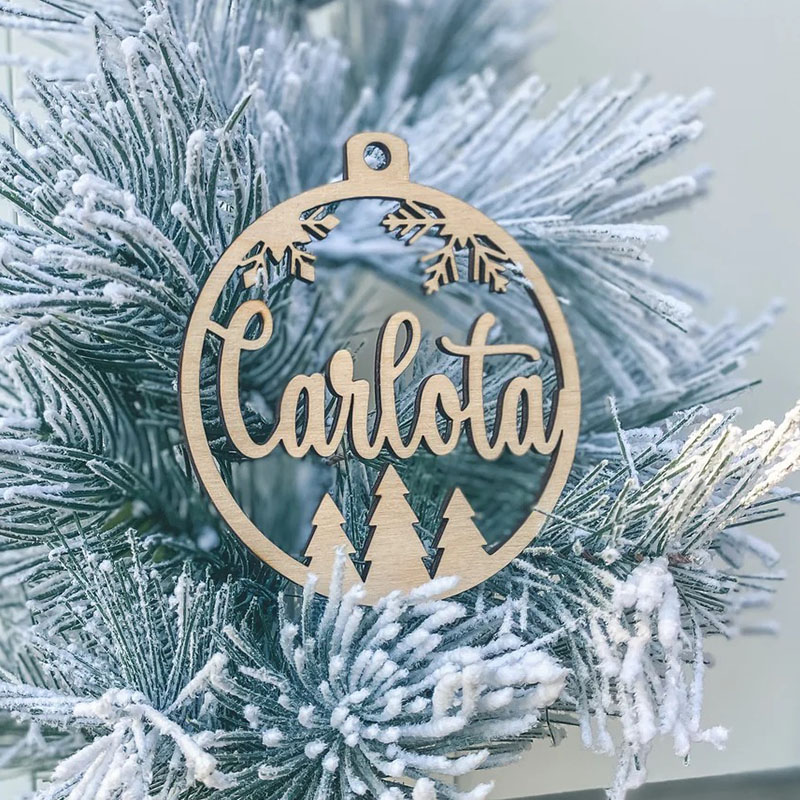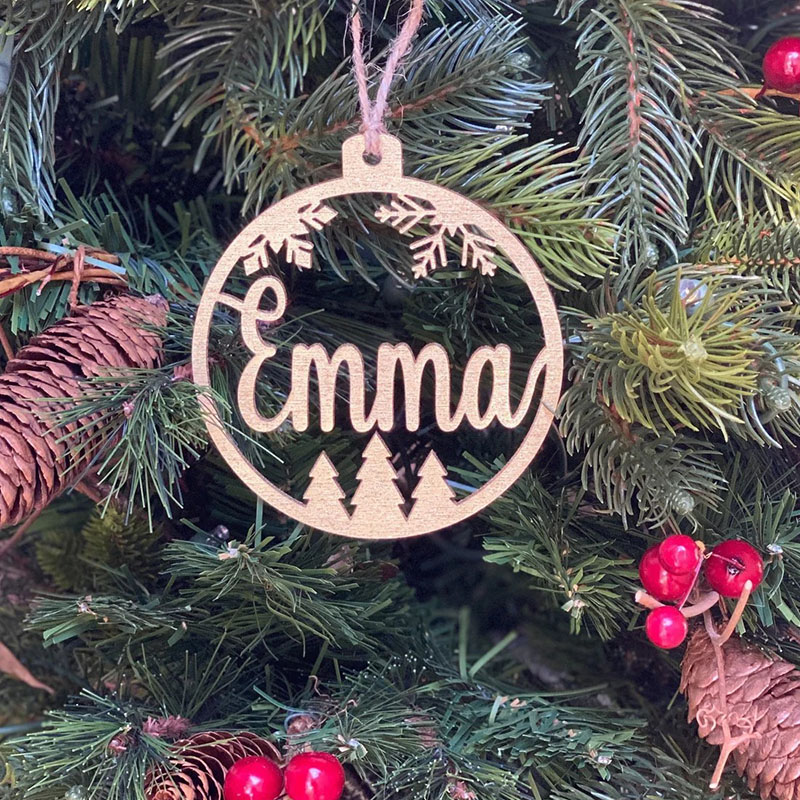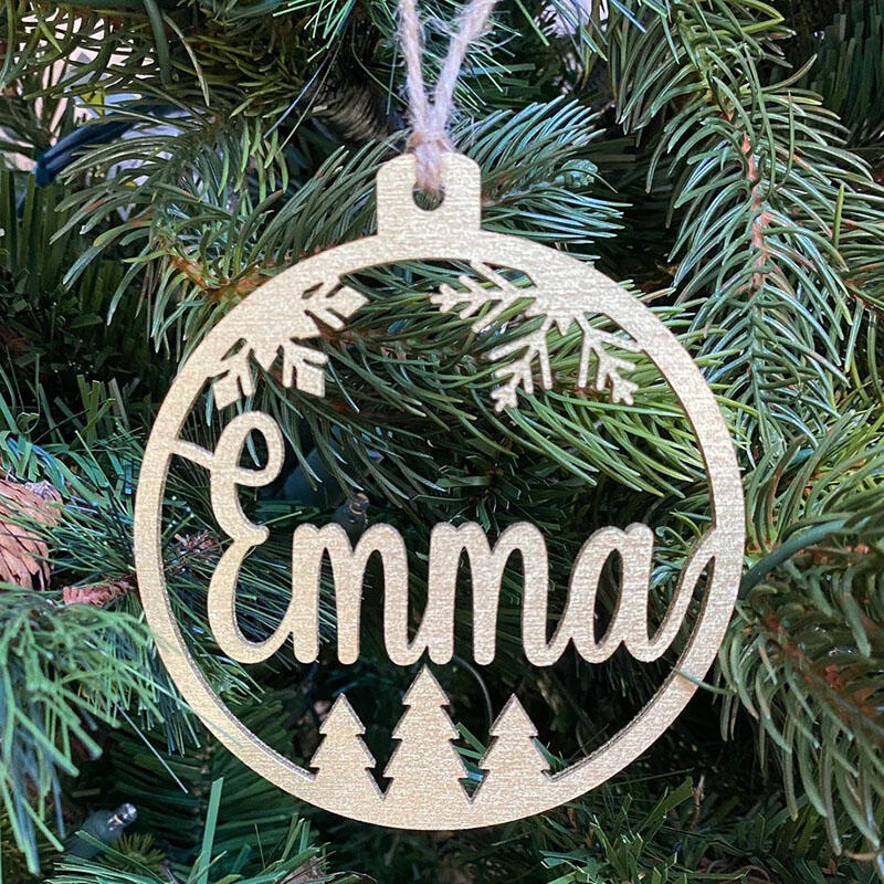 Personalized Name Round Wooden Snowflake Pine Christmas Decoration