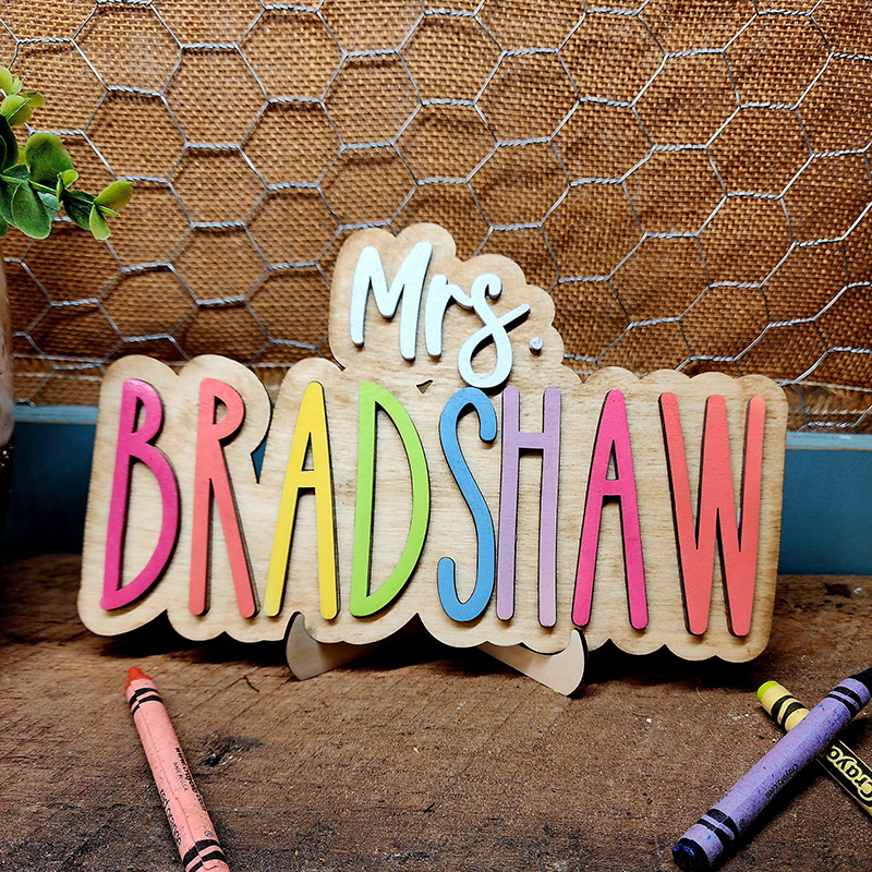 Personalized Name Sign with Random Color Beautiful Present for Teacher