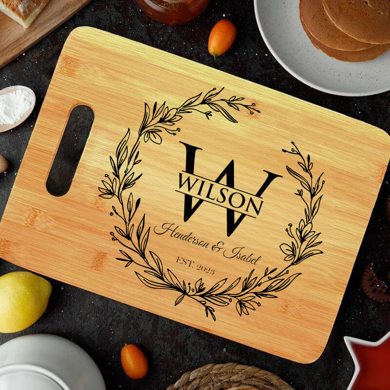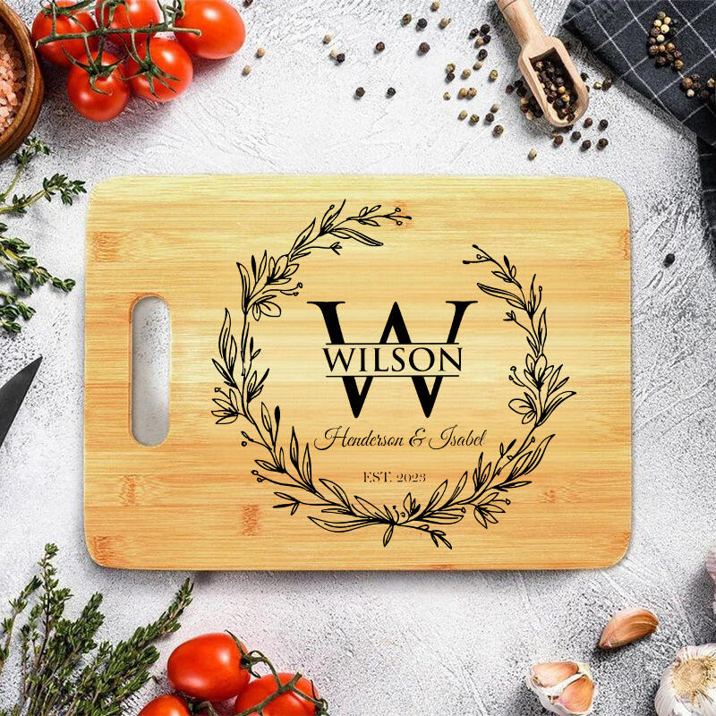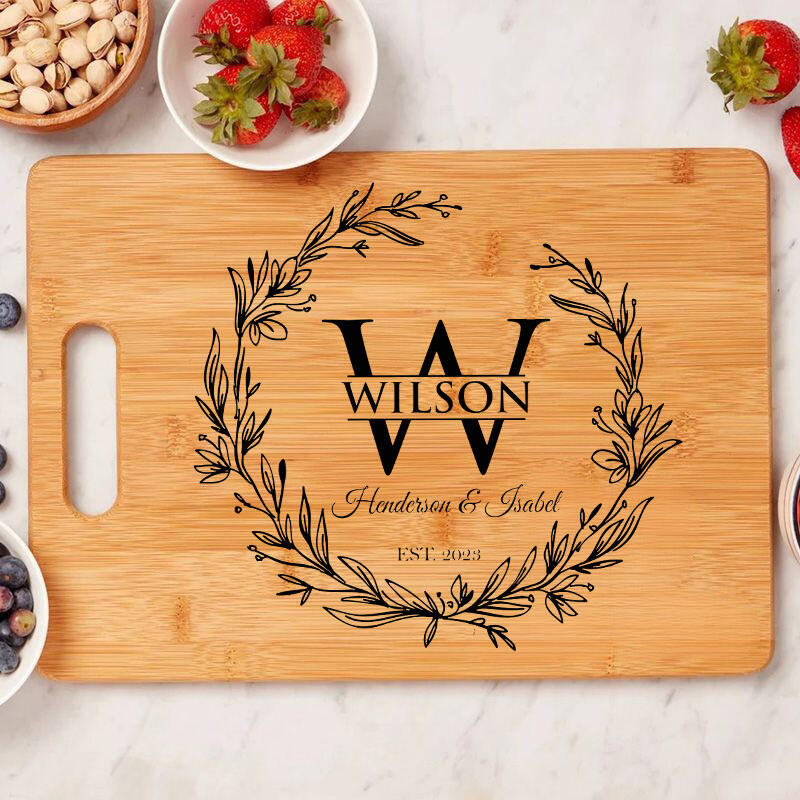 Personalized Name Square Charcuterie Board with Perfect Garland Pattern Beautiful Wedding Gift