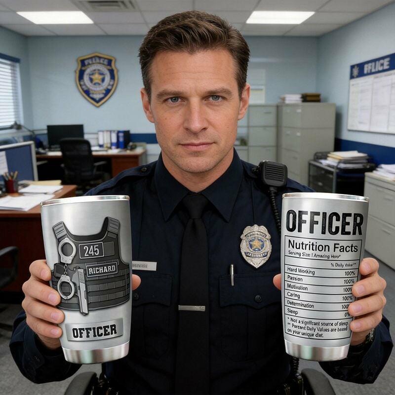 Personalized Name Tumbler with Bulletproof Vest Pattern Cool Gift for Police