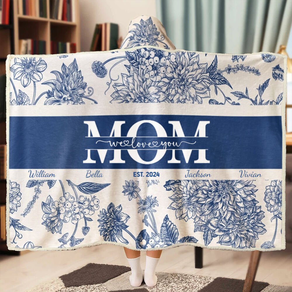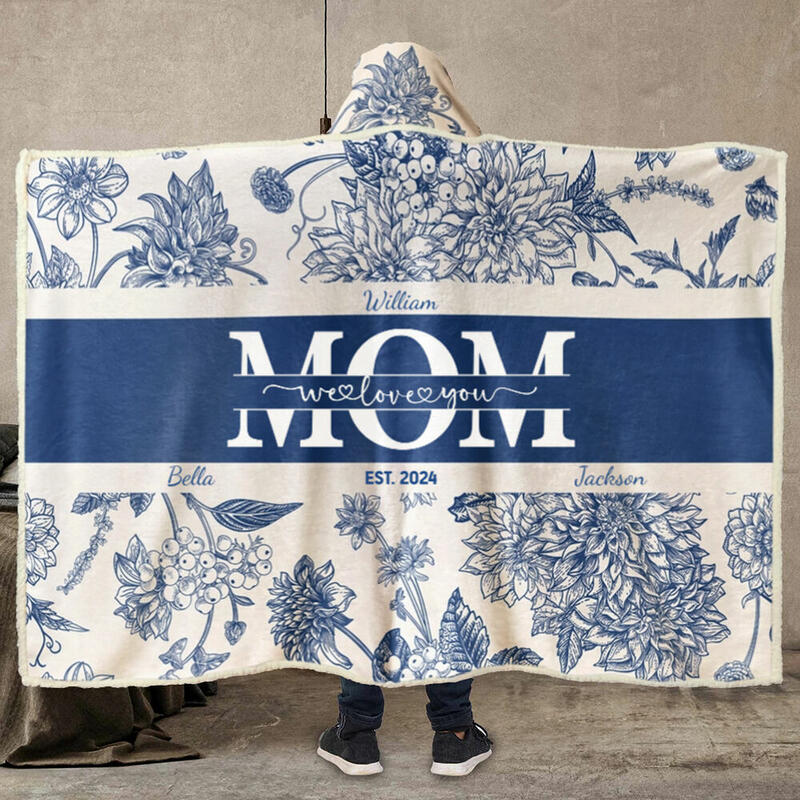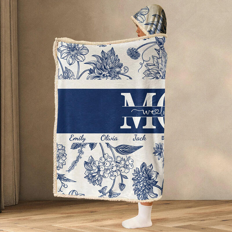Personalized Name Wearable Blanket Hoodie with Beautiful Flowers Pattern Elegant Gift for Mother's Day