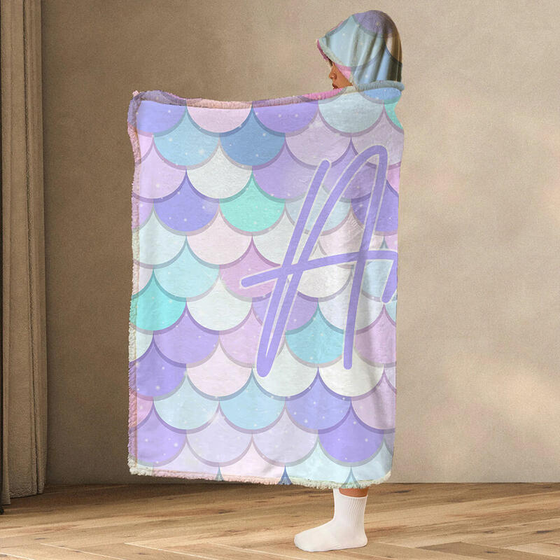 Personalized Name Wearable Blanket Hoodie with Colored Scales Pattern Beautiful Gift for Bestie