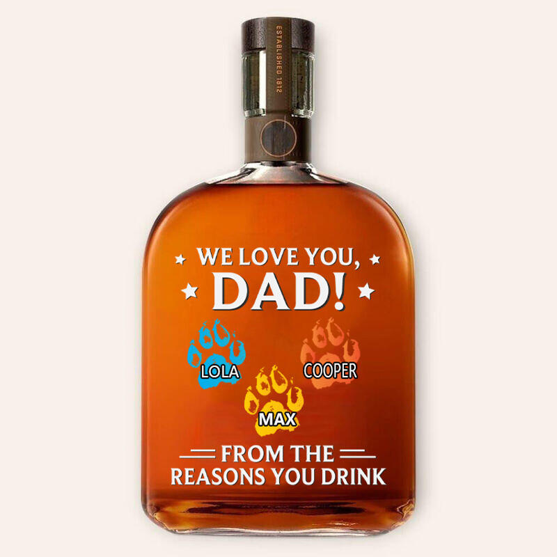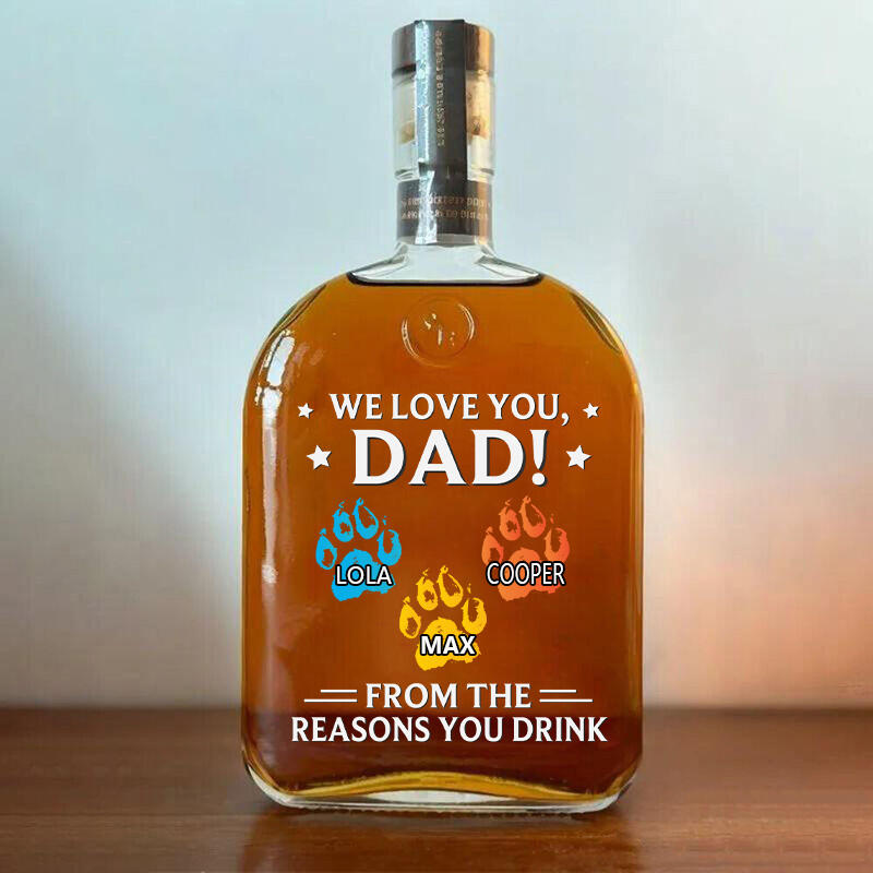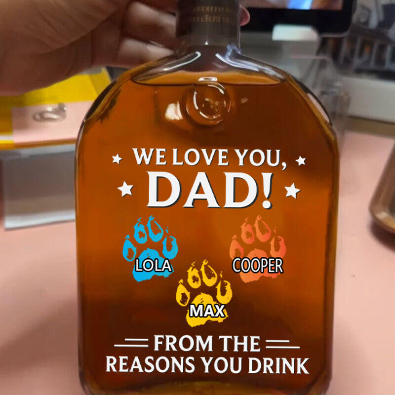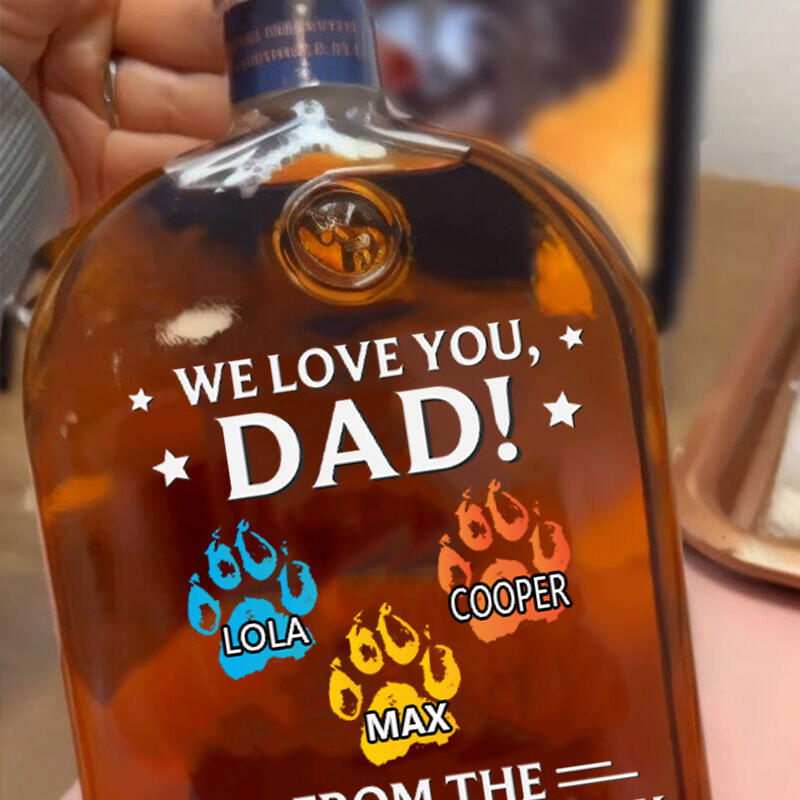 Personalized Name Whiskey Bottle with Paw Print Pattern Cute Gift for Pet Lovers