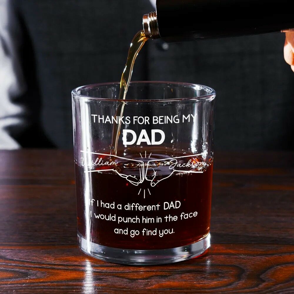 Personalized Name Whiskey Glass with Fist Bump Pattern Cool Gift for Father