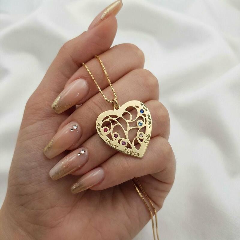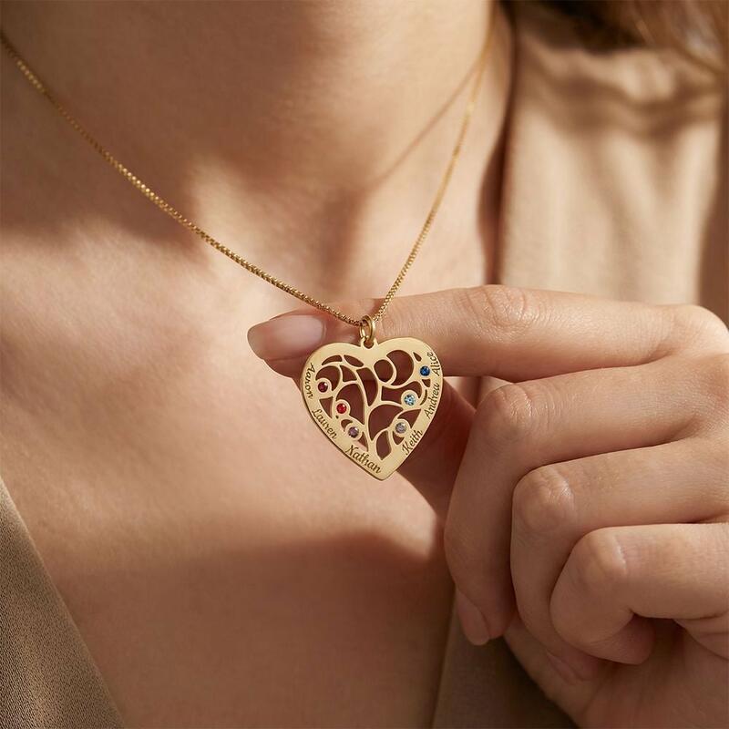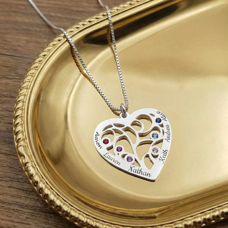 Personalized Necklace Heart Pendant with Kids and Grandchildren Names Birthday Gift for Grandma