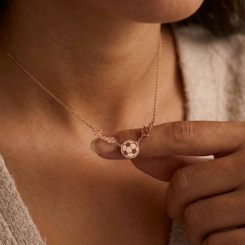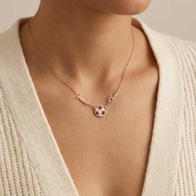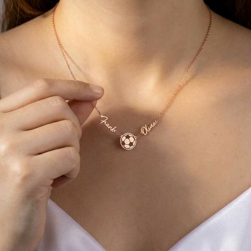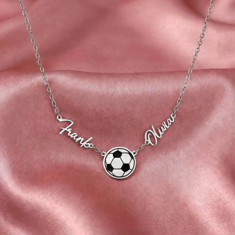 Personalized Necklaces with Couple Names and Soccer Ball Design Gift for Sports Lover