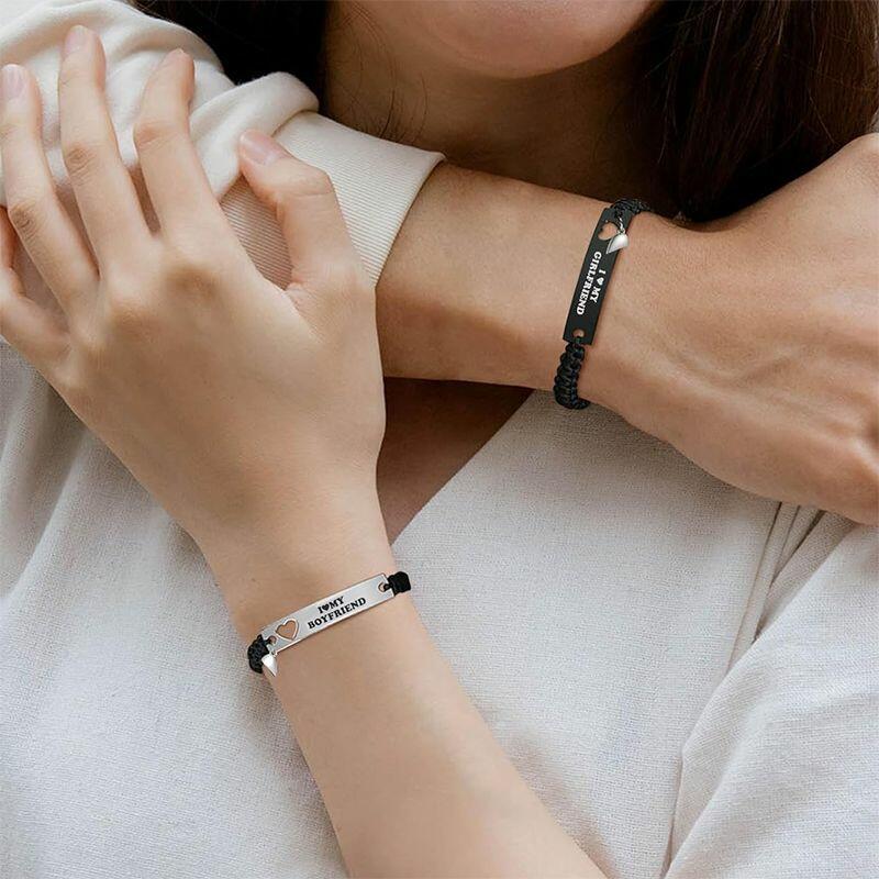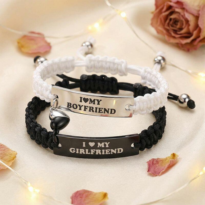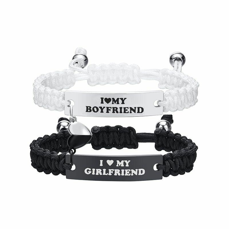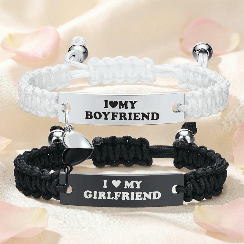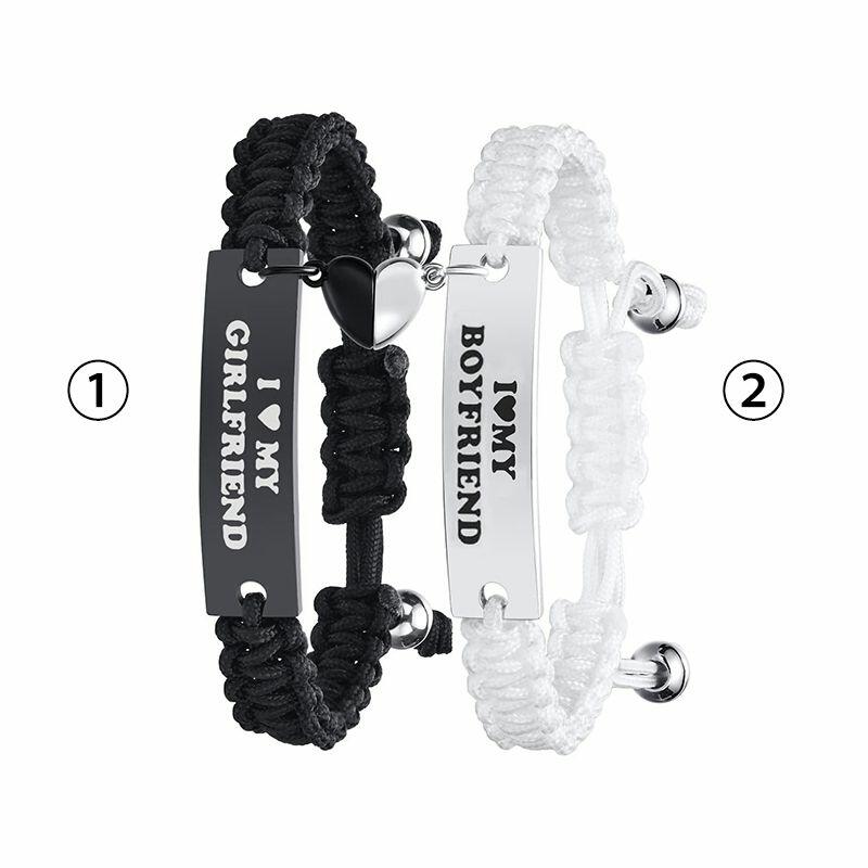 Personalized Paired Bracelet Magnetic Heart I Love My Boyfriend and Girlfriend Gift for Lovers