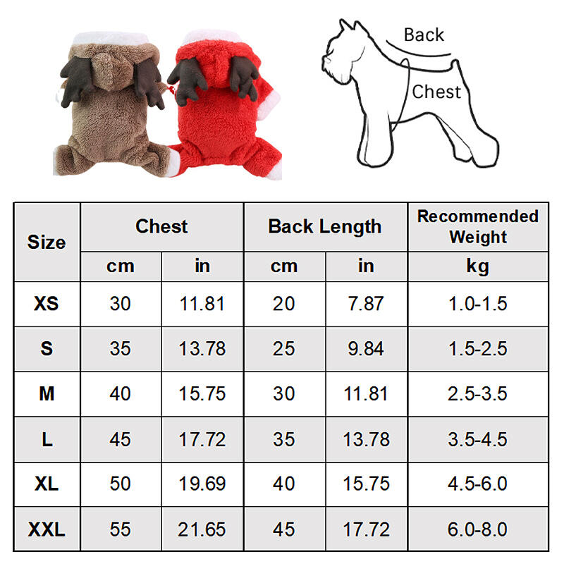 Each pet is different in size, the reference weight is only an approximate suggestion, please choose the size based on your pet's chest circumference/back length.