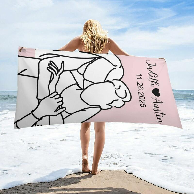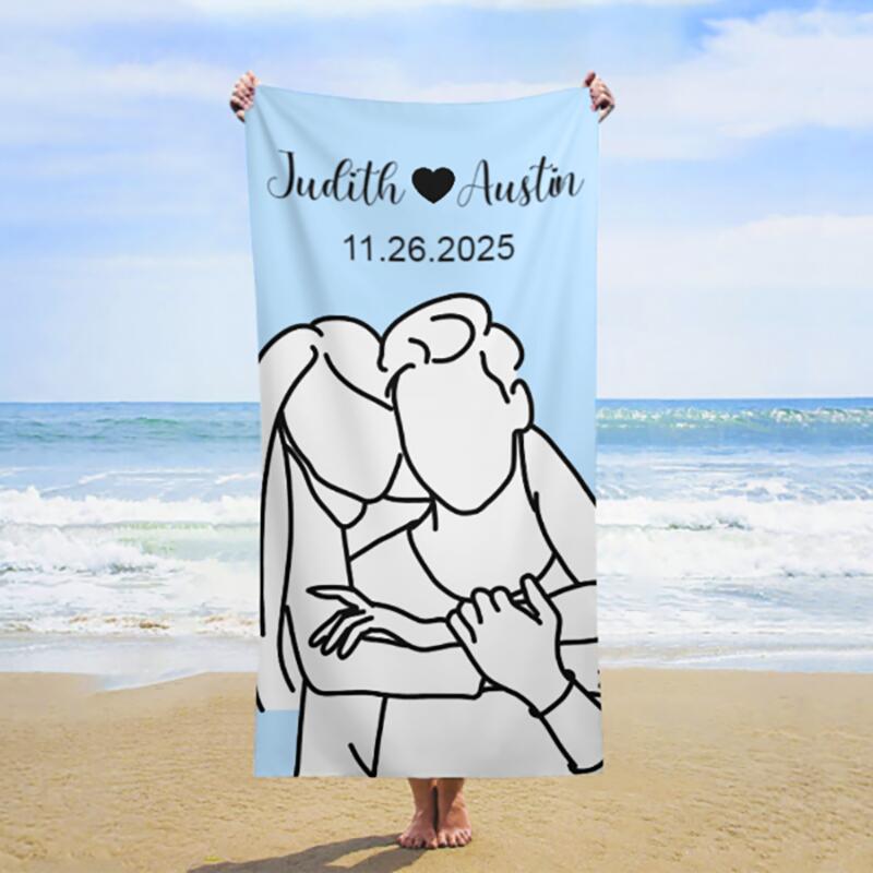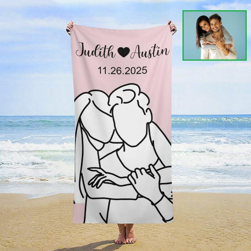 Personalized Photo Bath Towel with Custom Name Creative Gift for Sweet Couples