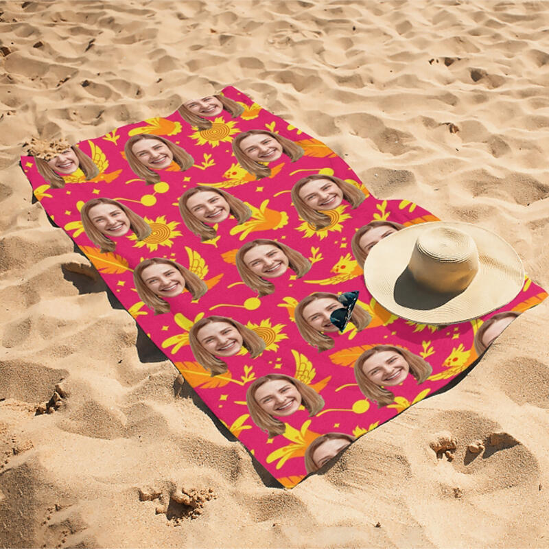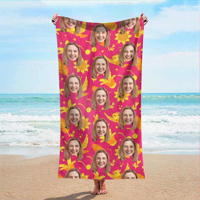 Personalized Photo Bath Towel with Cute Birds Pattern Lovely Gift for Bestie