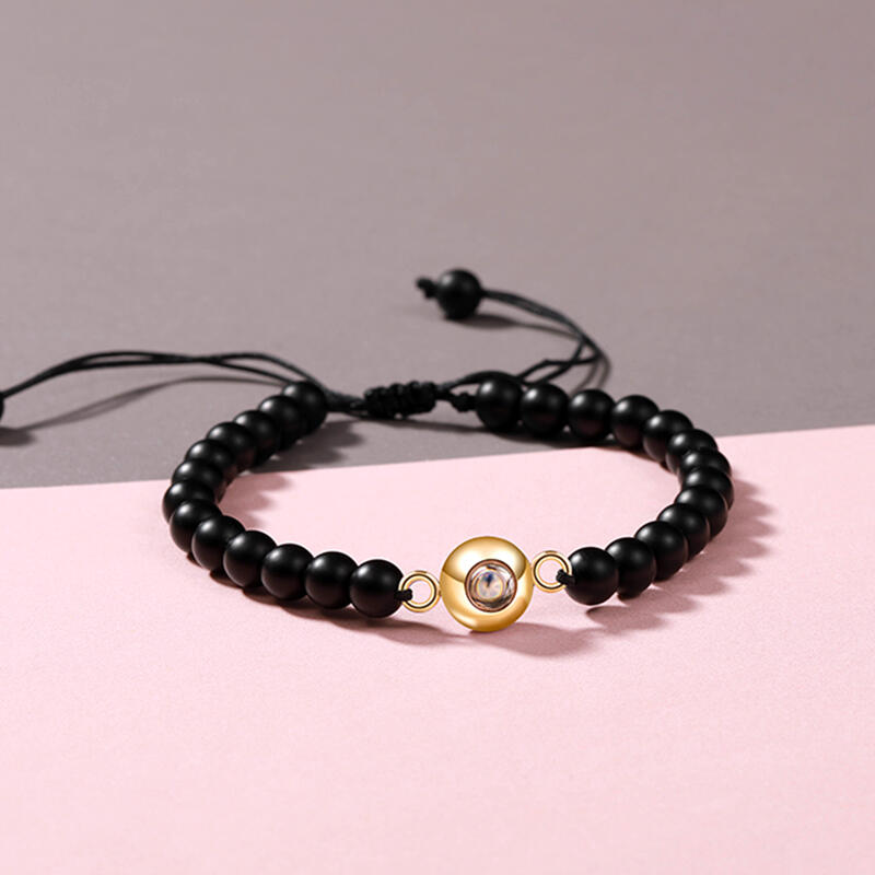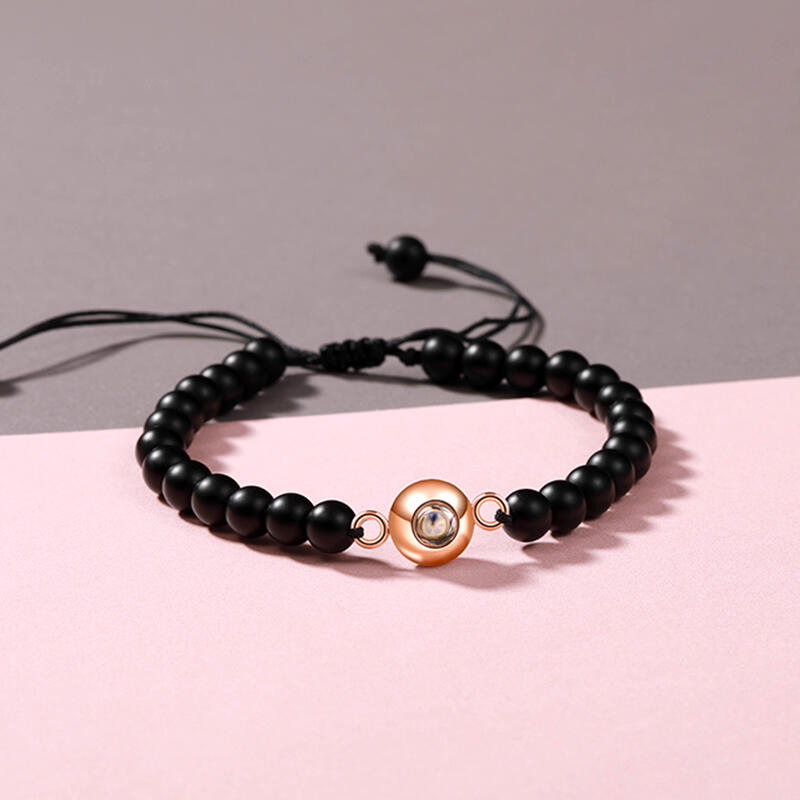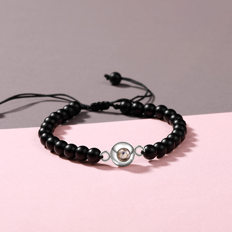 Personalized Photo Black Beaded Projection Bracelet for Lover