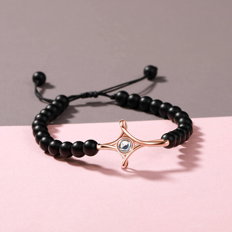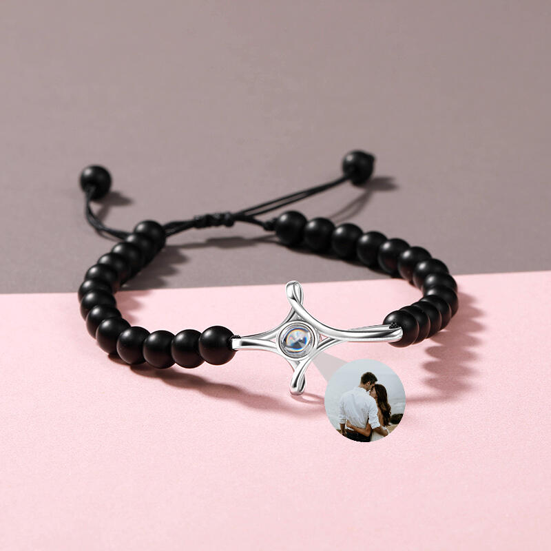 Personalized Photo Black Beaded Projection Bracelet with Cross