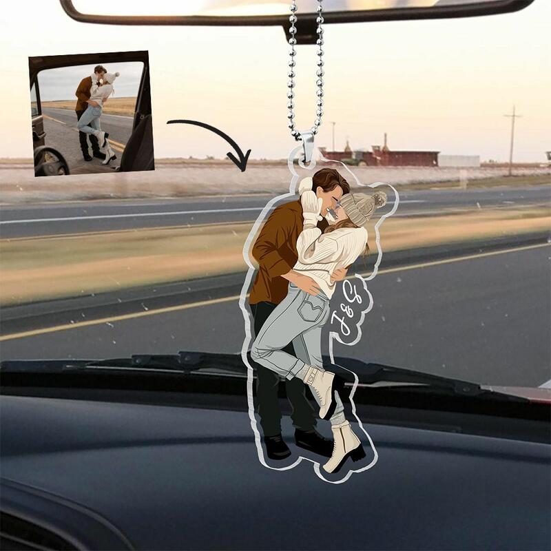 Personalized Photo Car Ornaments Acrylic Car Pendant Valentine's Day Gift for Boyfriend