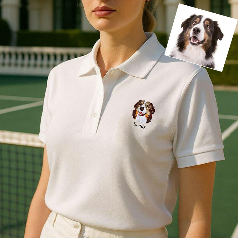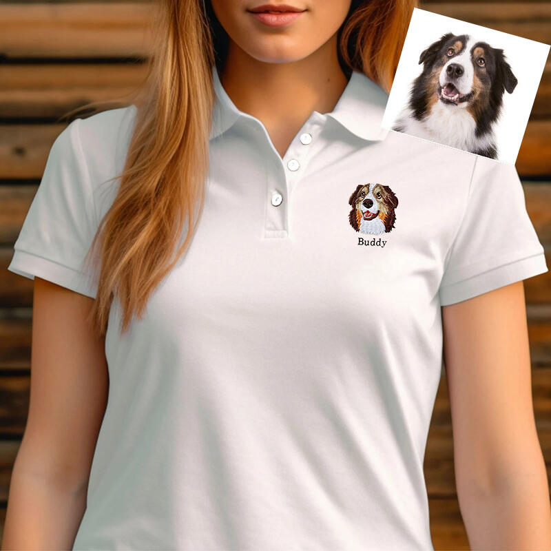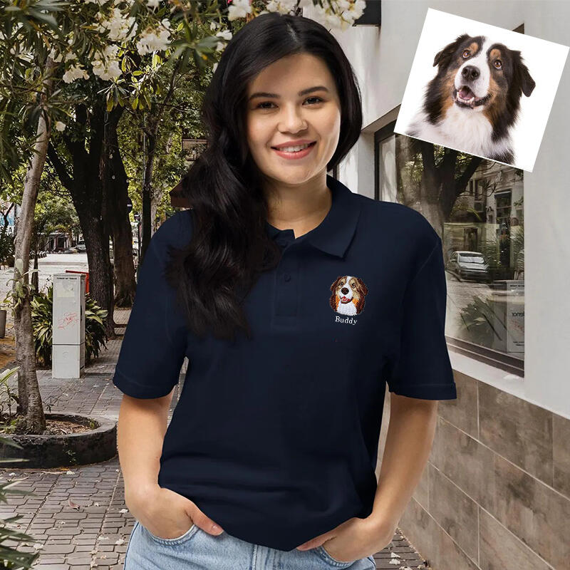 Personalized Photo Embroidered Polo Shirt with Custom Name Perfect Gift for Pet Lovers
