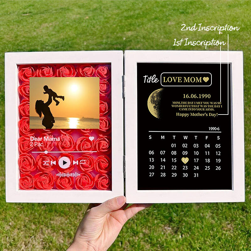 Personalized Photo Flower Shadow Box Custom Song and Moon Phase Calendar Creative Gift for Mother's Day