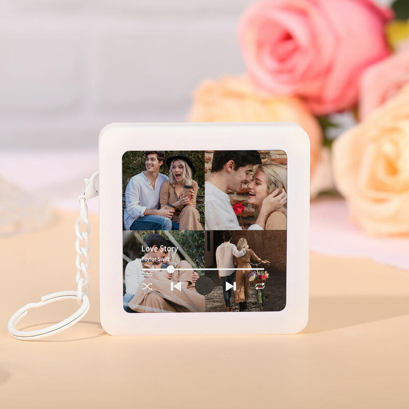 Personalized Photo Keychain Music Box with Custom Spotify Code Funny Gift for Couples
