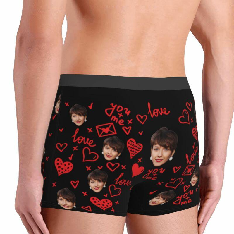 Personalized Photo Men's Underwear Boxer Briefs with Envelope Pattern Creative Gift for Husband