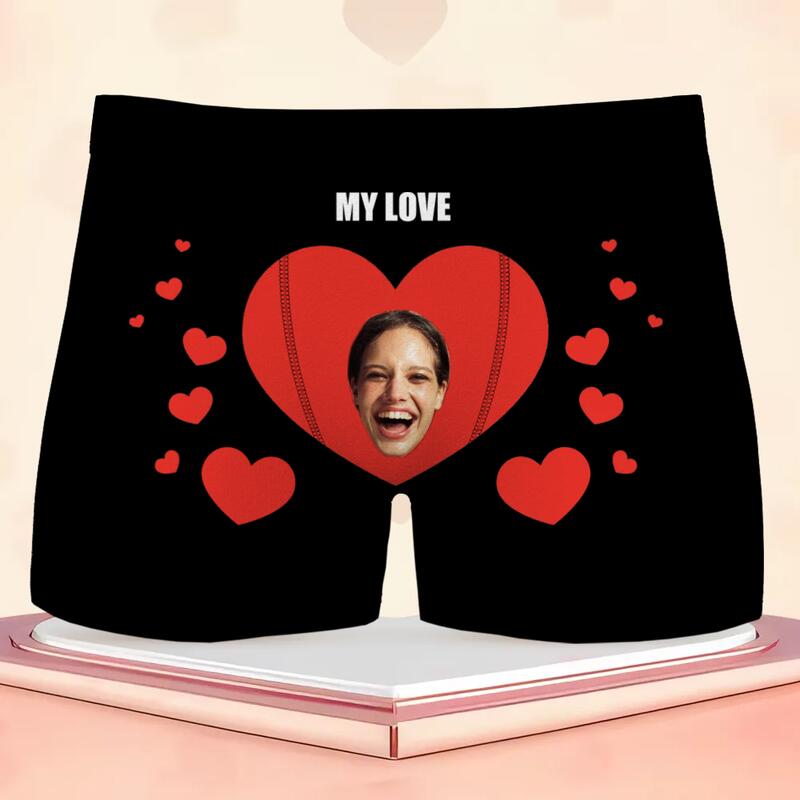Personalized Photo Men's Underwear Boxer Briefs with Heart Pattern Perfect Gift for Husband