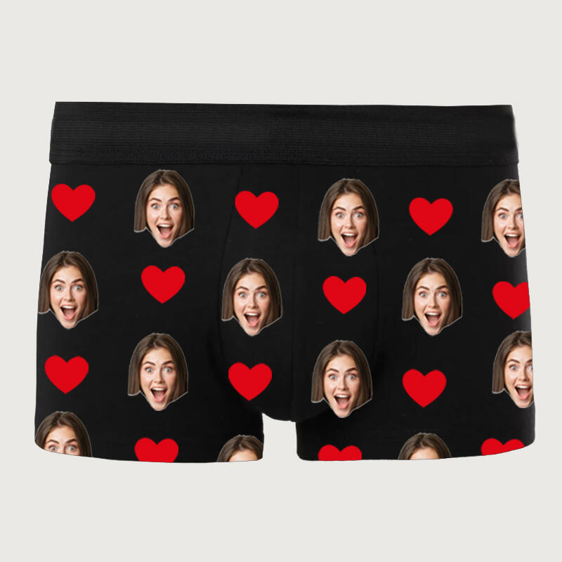 Personalized Photo Men's Underwear Boxer Briefs With Red Heart Pattern Funny Gift for Him