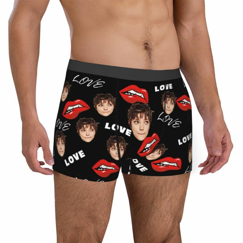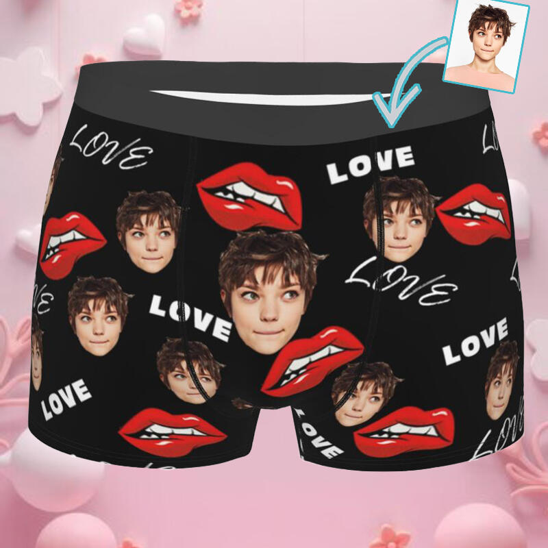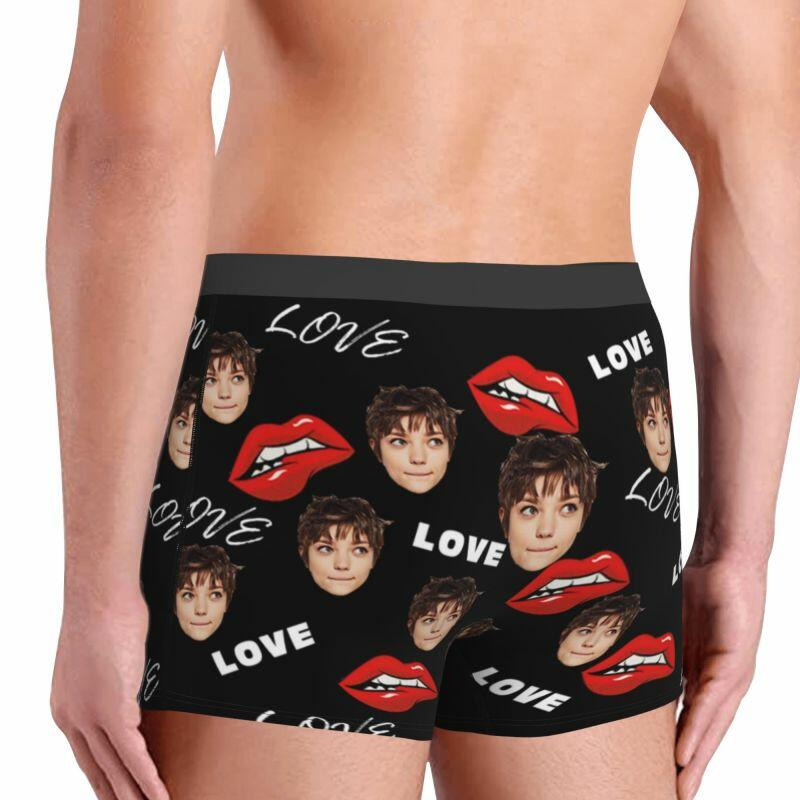 Personalized Photo Men's Underwear Boxer Briefs with Red Mouth Pattern Cool Gift for Boy Friend