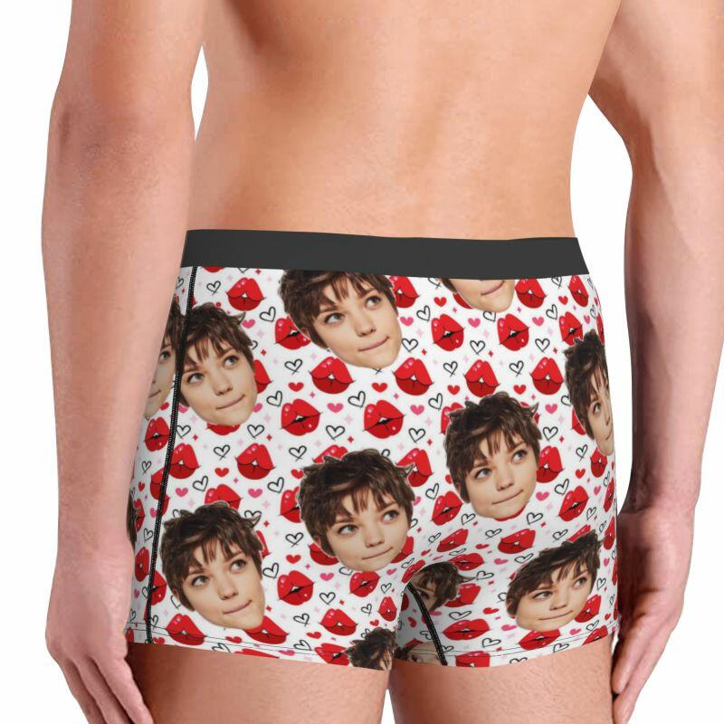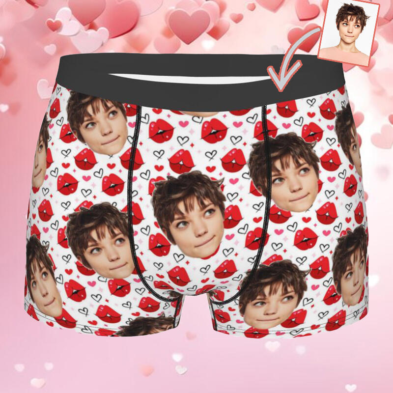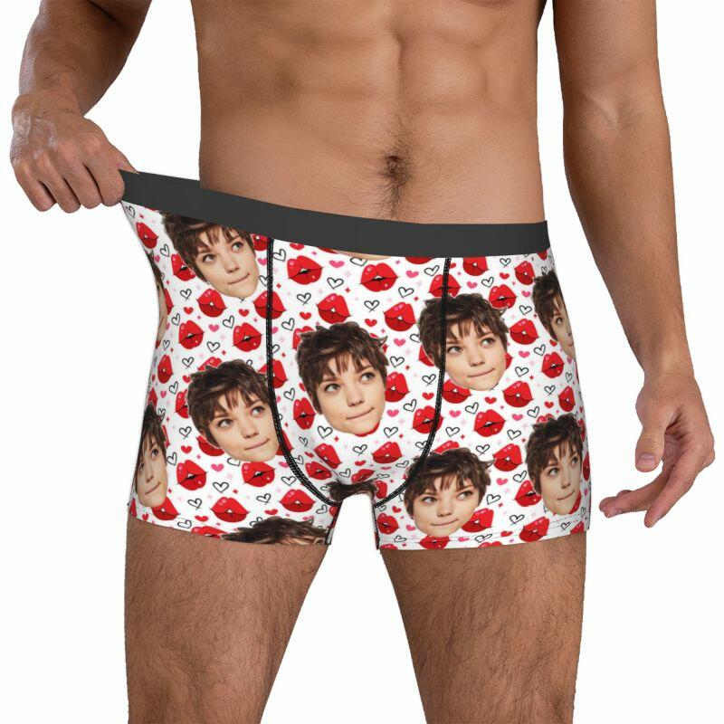 Personalized Photo Men's Underwear Boxer Briefs with Red Mouth Pattern Sweet Gift for Boy Friend