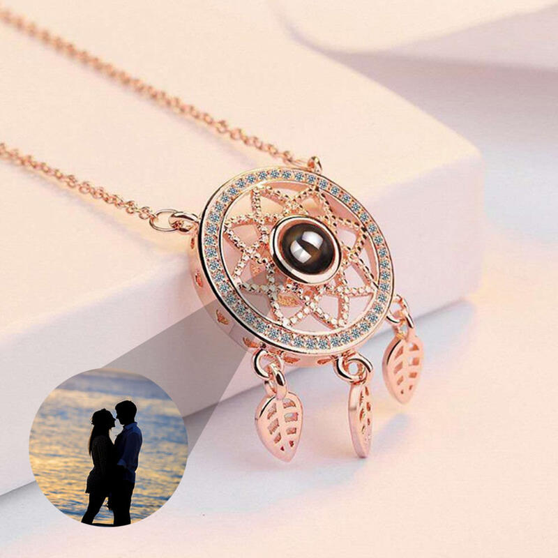 This is a mysterious necklace, Personalized for the moment you love most on a projection necklace! Engraved love never fades, and treasured memory will always be with you. Carry your Little cute photo hidden in the pendant, You can see the photo inside the pendant, or you can use it to illuminate the light and project your photo on the wall. The best dreamy gift for yourself and family, and friends.