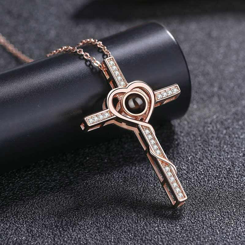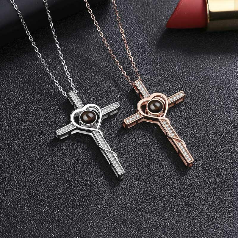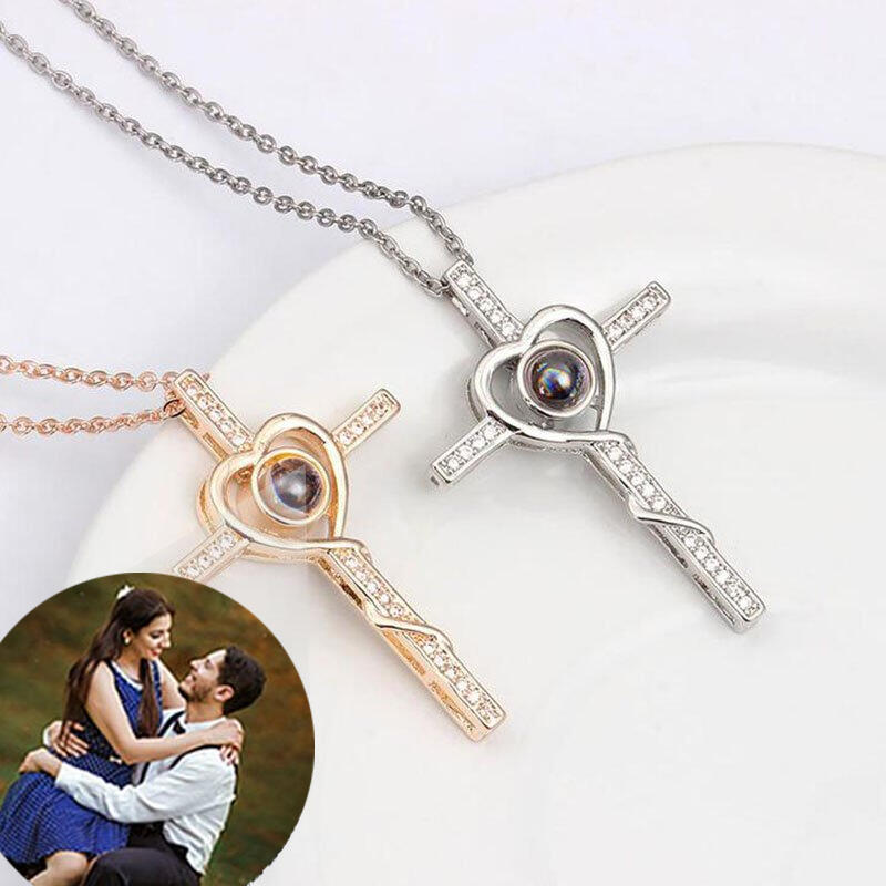 Personalized Photo Projection Necklace-Cross & Heart