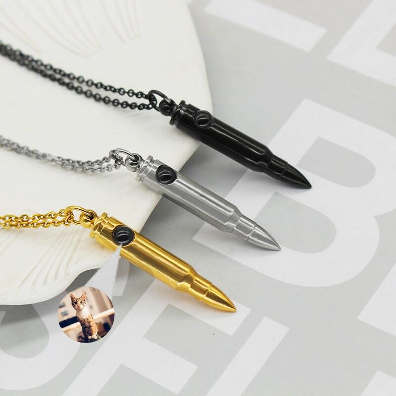 Personalized Photo Projection Necklace with Bullet Shaped Cool Gift for Special Person