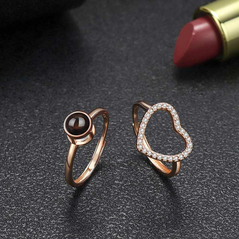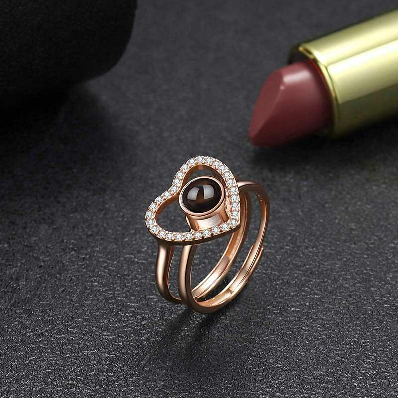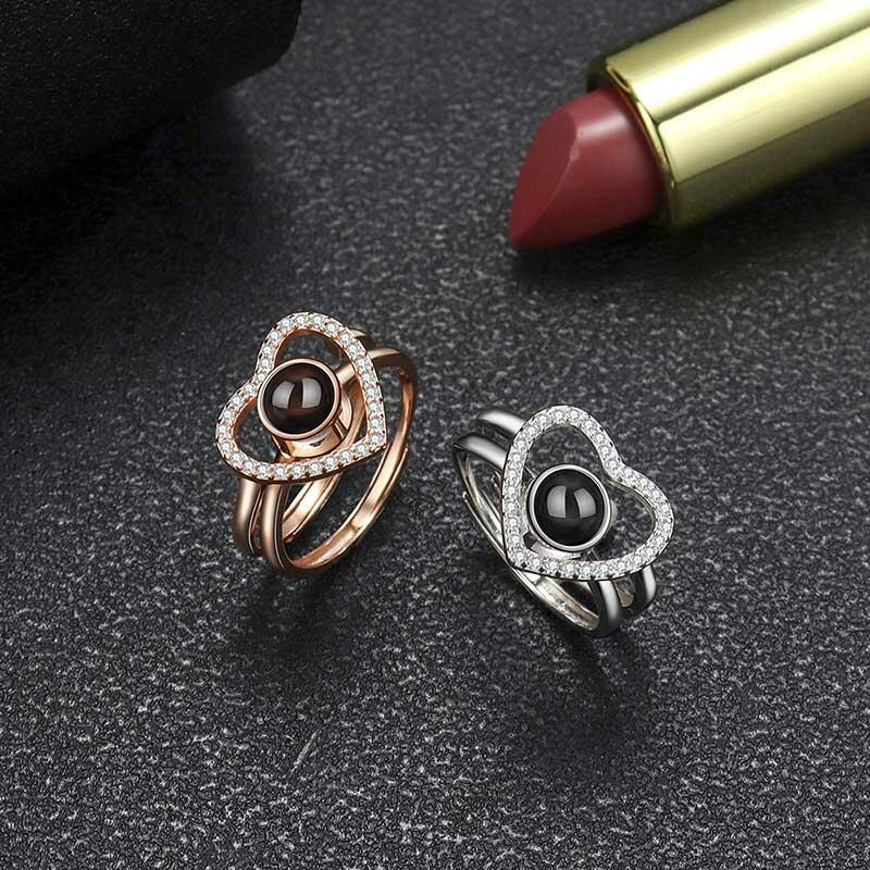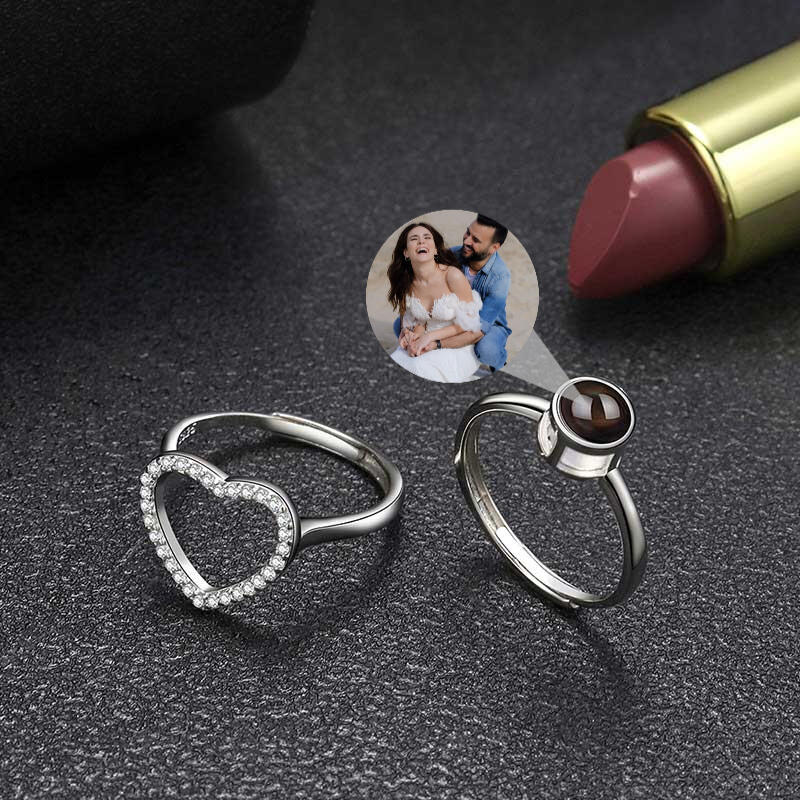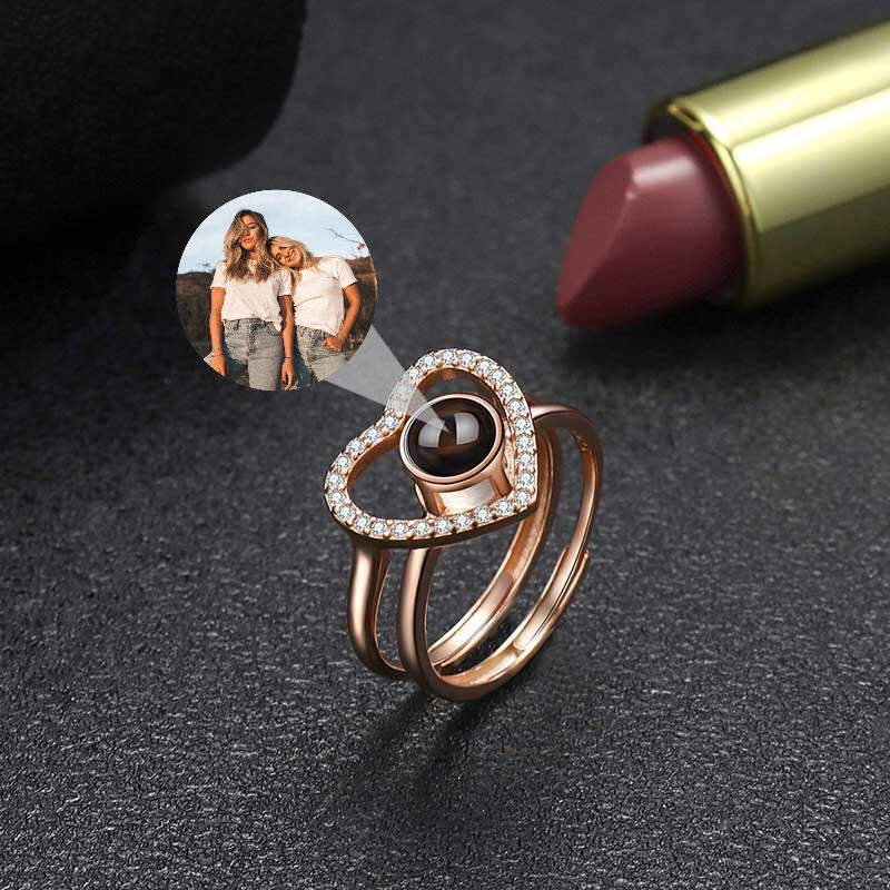 Personalized Photo Projection Two In One Ring With Heart in Heart