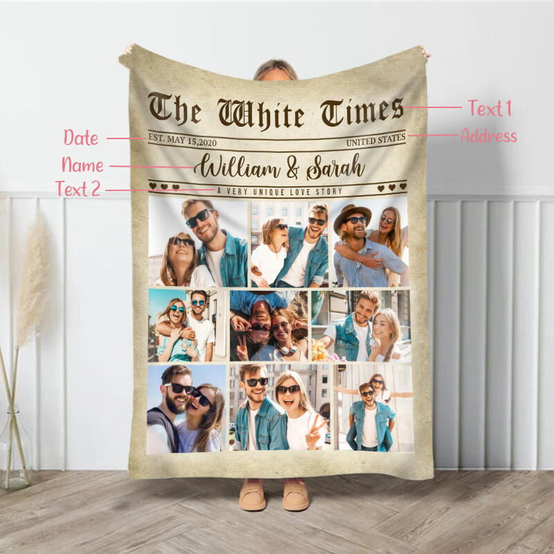 Personalized Picture Blanket Newspaper Design Style Gift for Friend