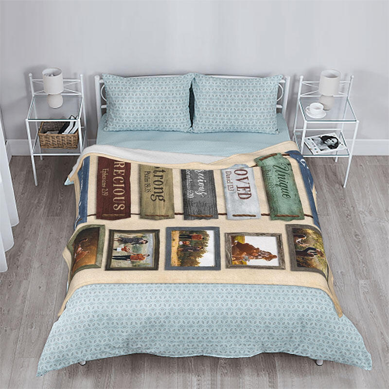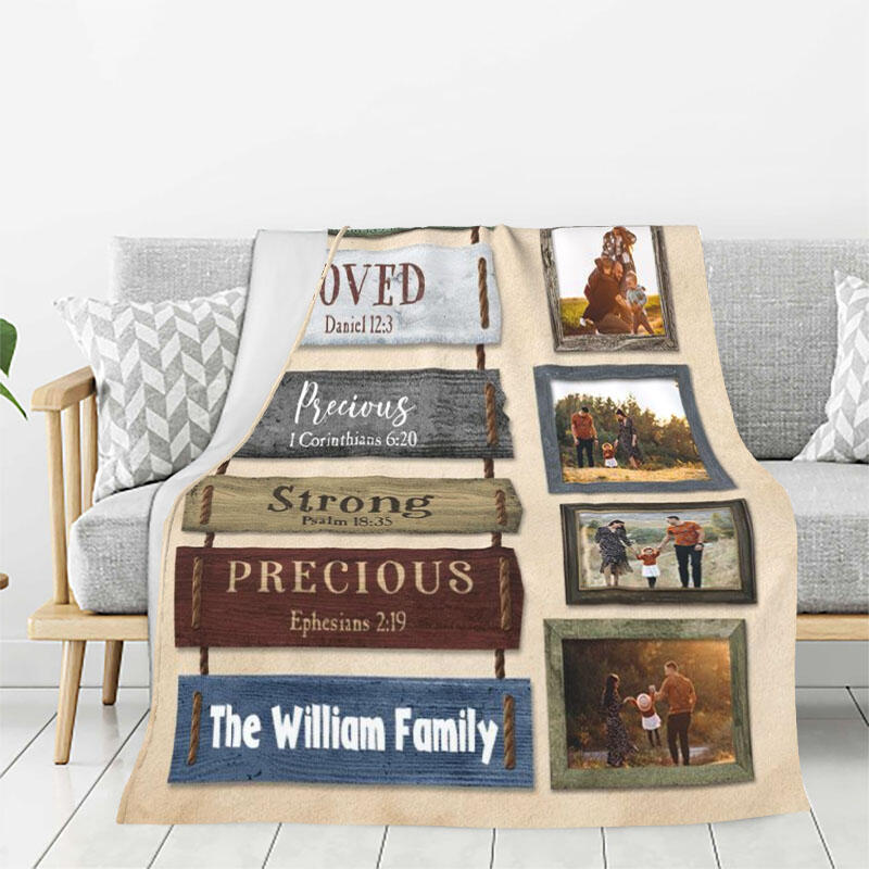 Personalized Picture Blanket Retro Design Style Precious Gift for Family