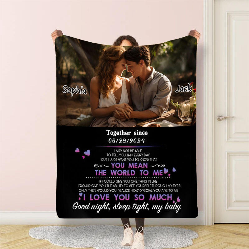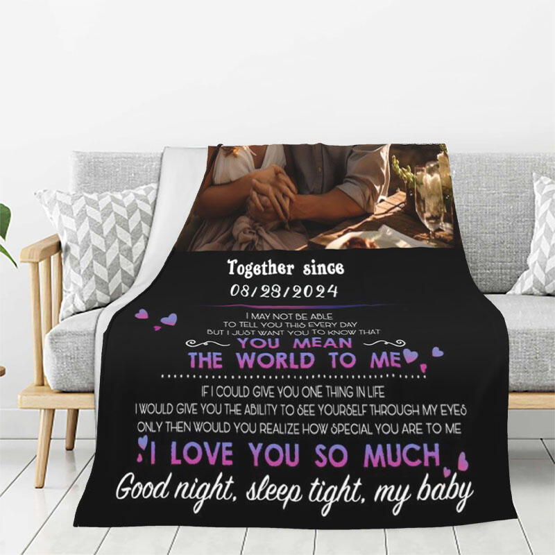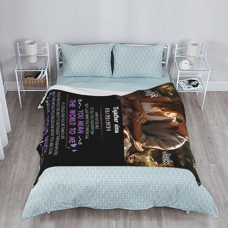 Personalized Picture Blanket Romantic Present for Couple "You Mean The World To Me"