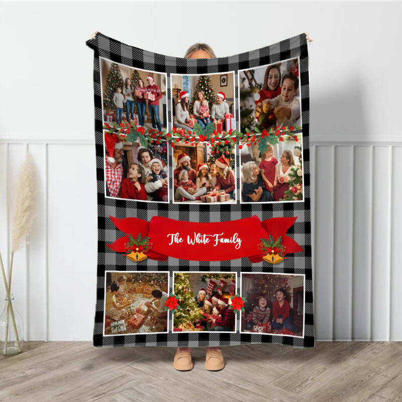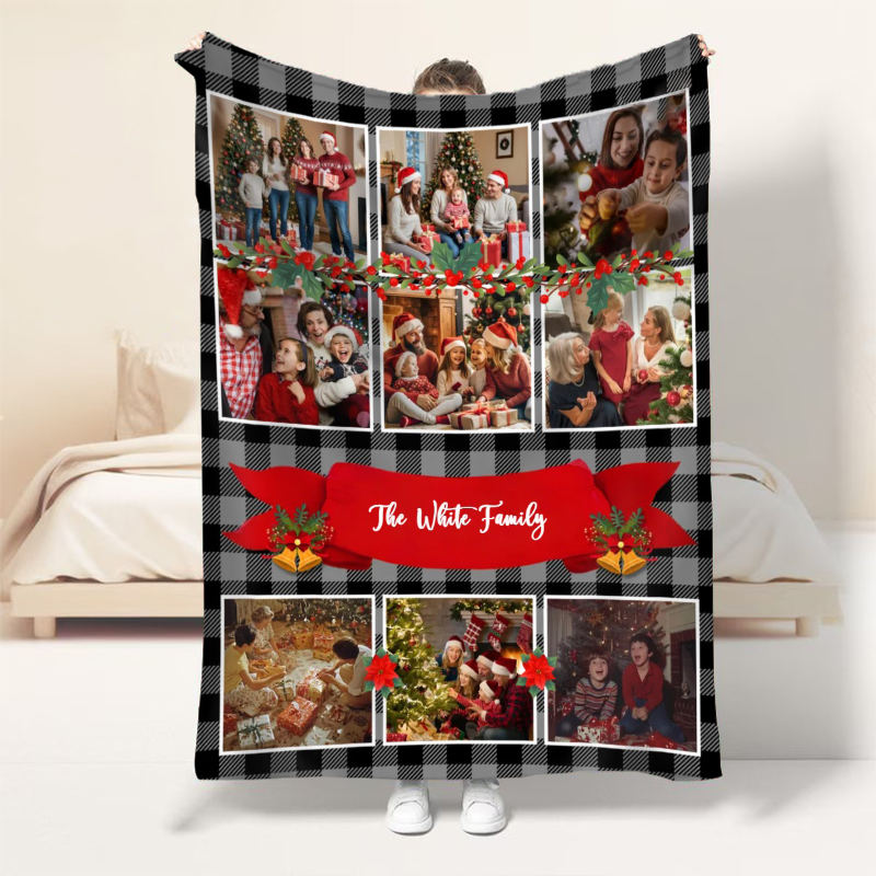 Personalized Picture Blanket with Bells Pattern Special Christmas Gift