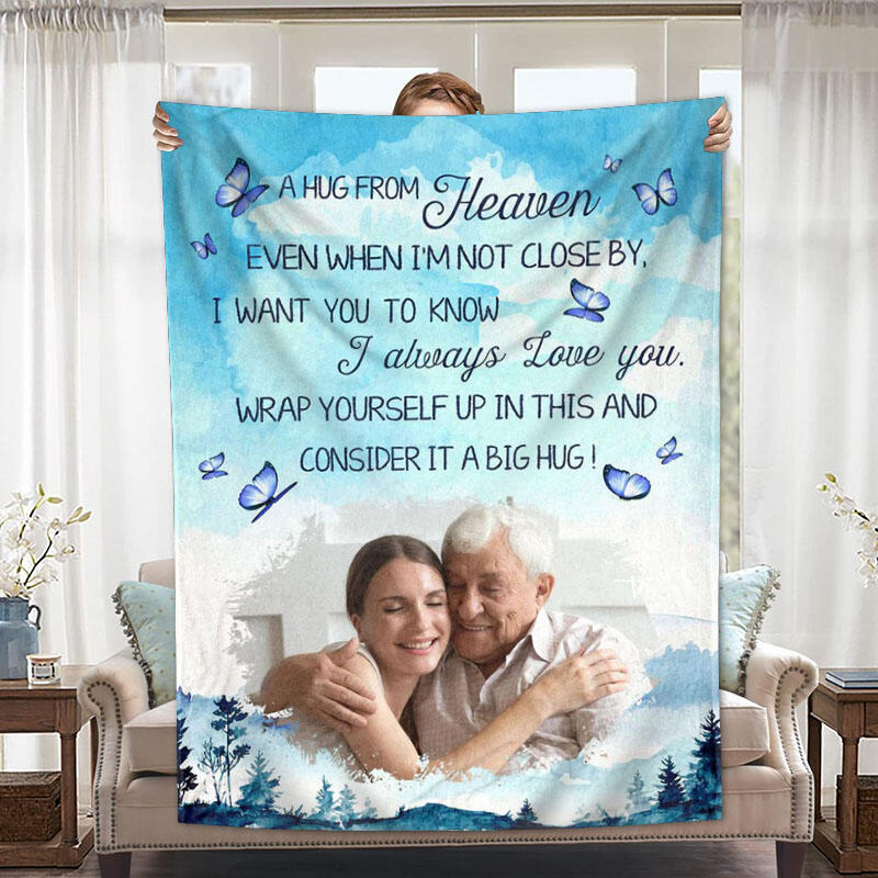 Personalized Picture Blanket with Blue Butterflies Pattern Beautiful Present for Dear Family