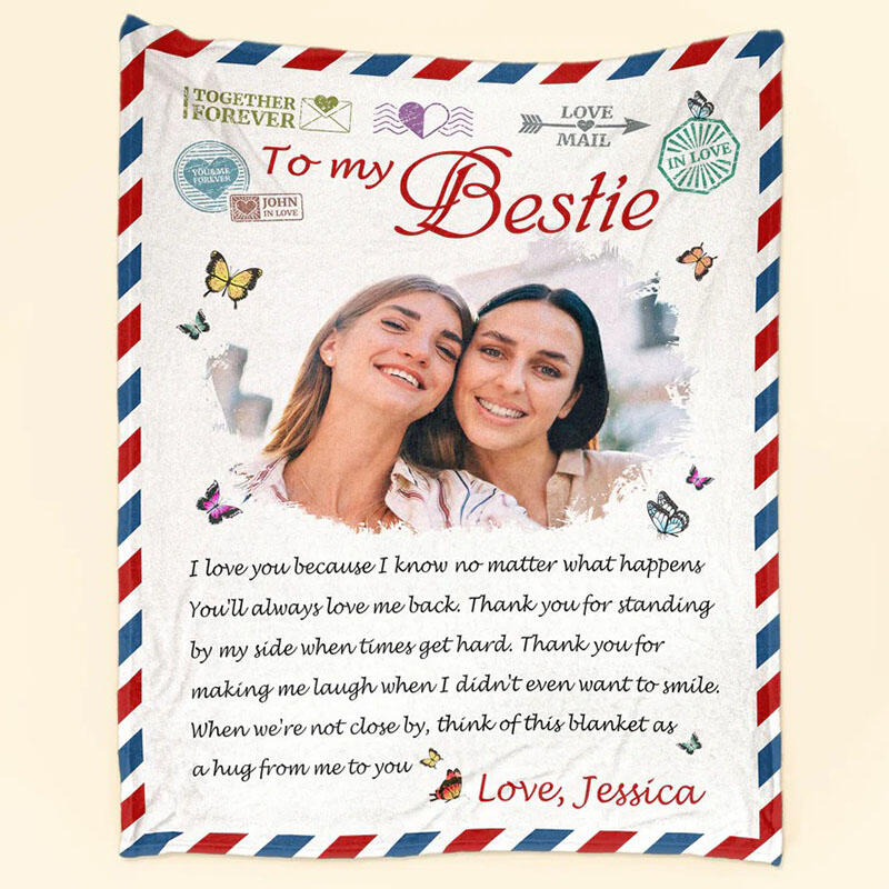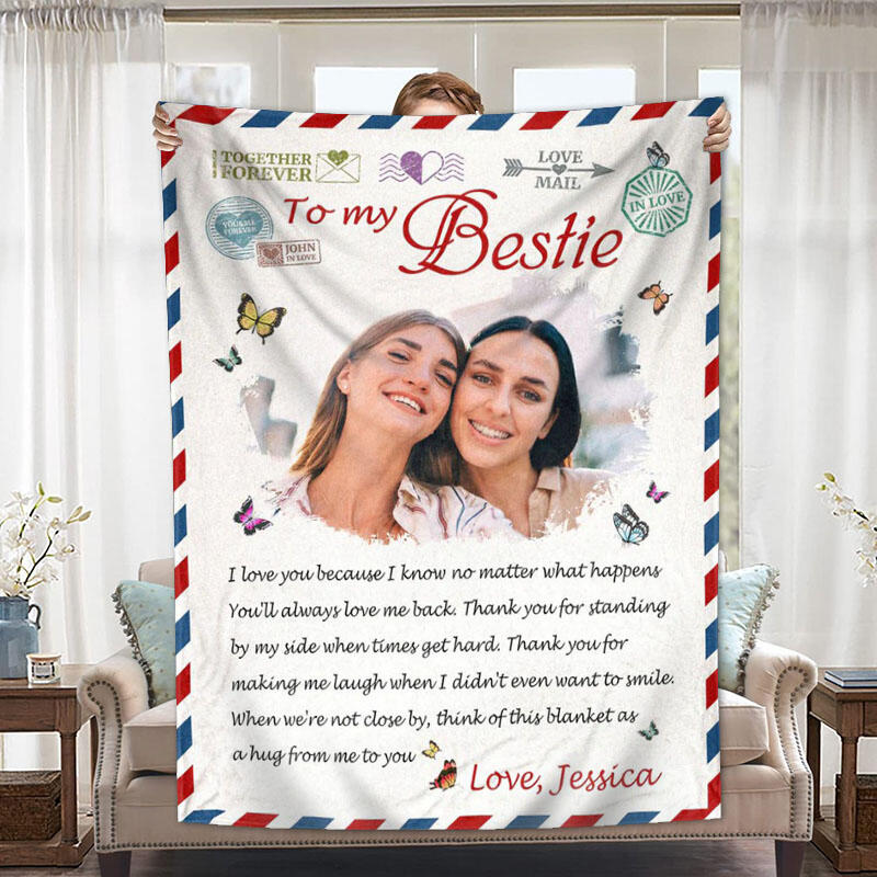 Personalized Picture Blanket with Colorful Butterflies Pattern Funny Present for Bestie