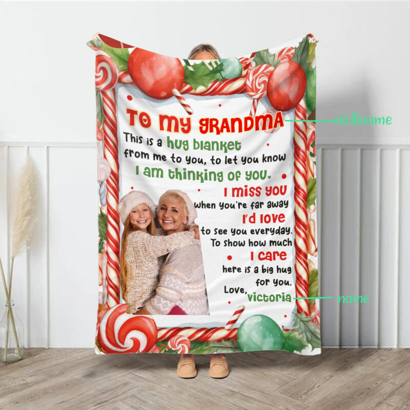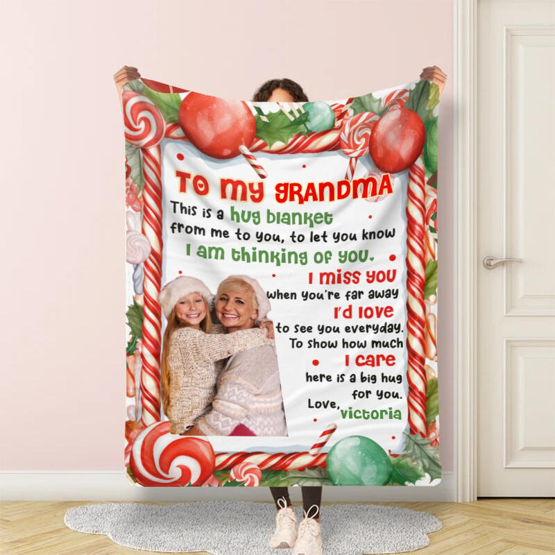 Personalized Picture Blanket with Lollypop Patter Best Gift for Family