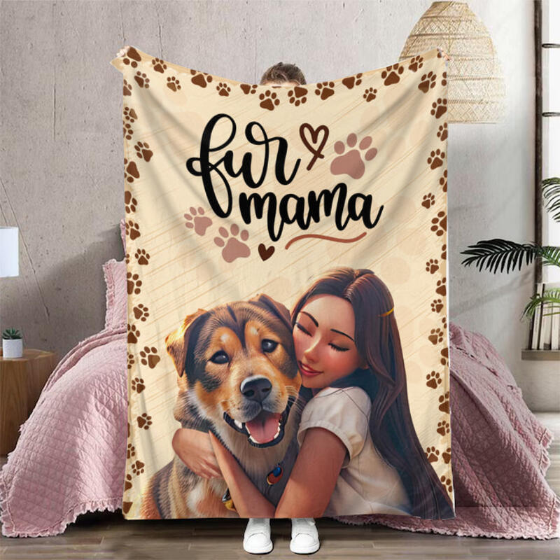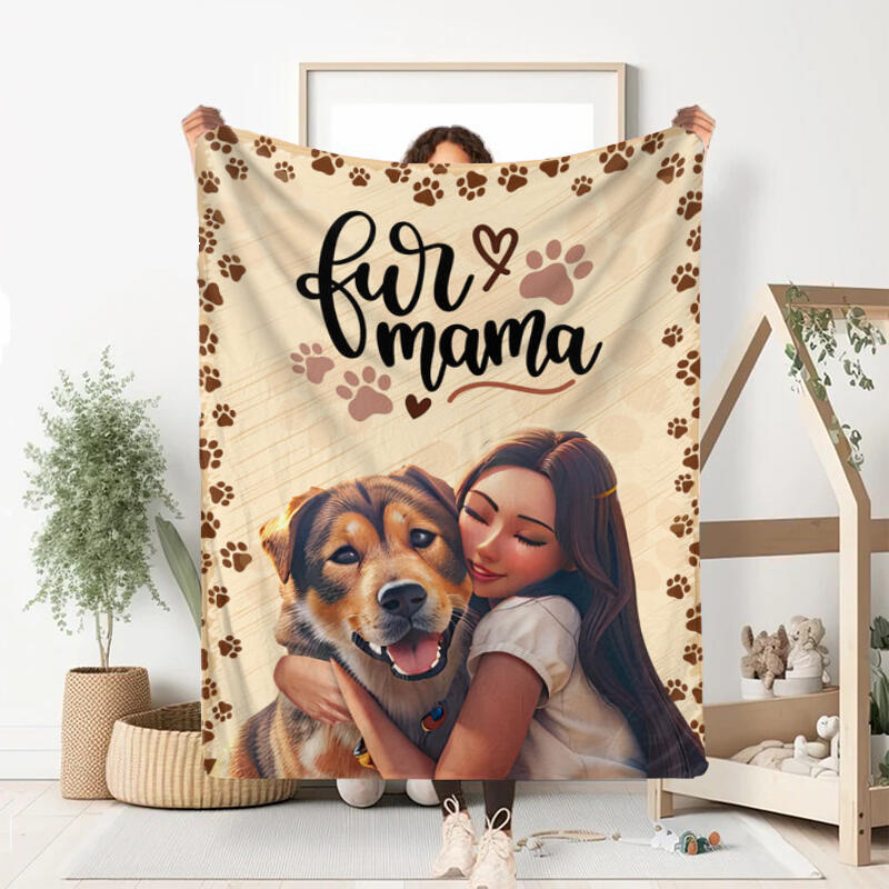 Personalized Picture Blanket with Paw Print Pattern Cute Gift for Pet Mama