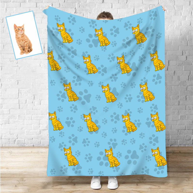 Personalized Picture Blanket with Paw Print Pattern Interesting Gift for Pet Lover