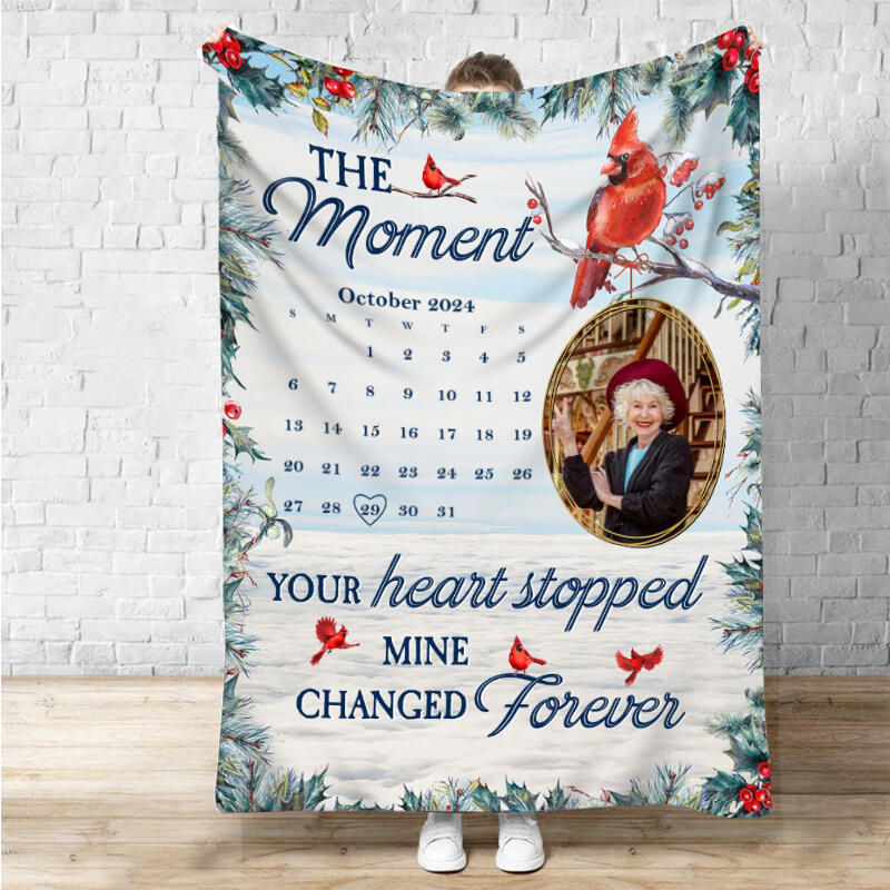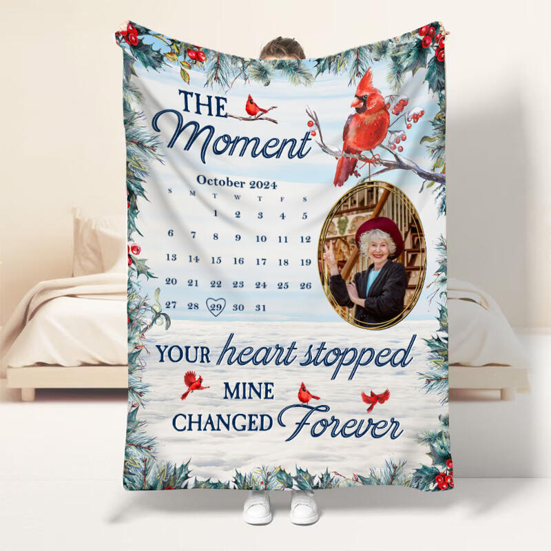 Personalized Picture Blanket with Red Birds Pattern Memorial Gift for Family