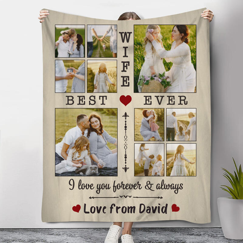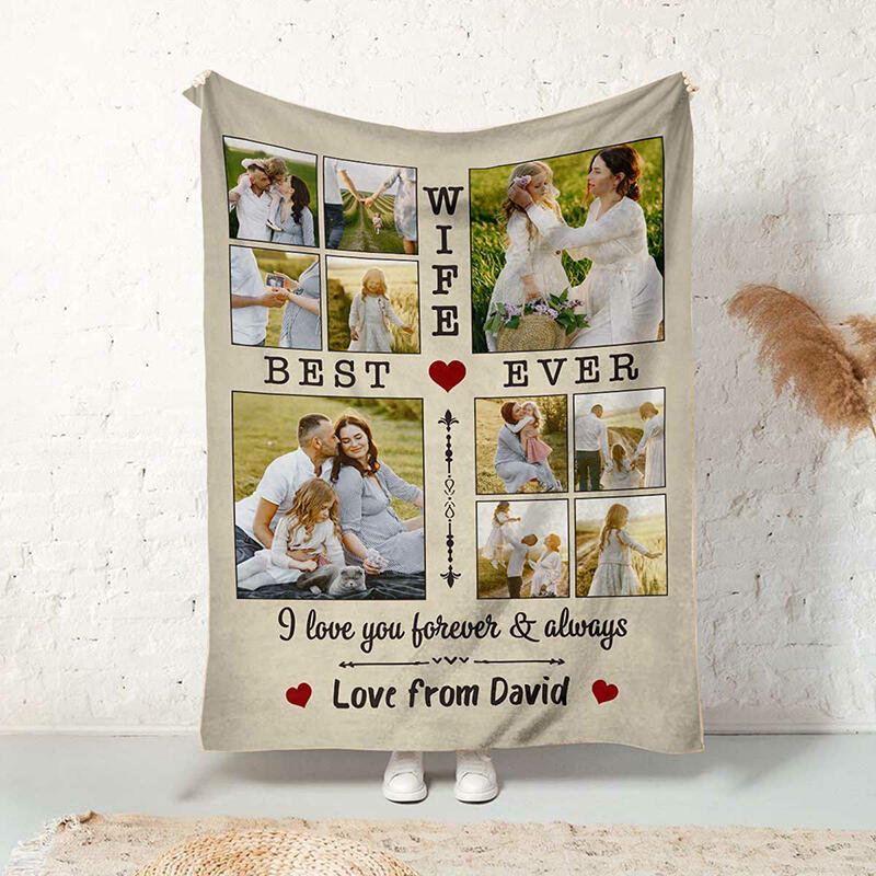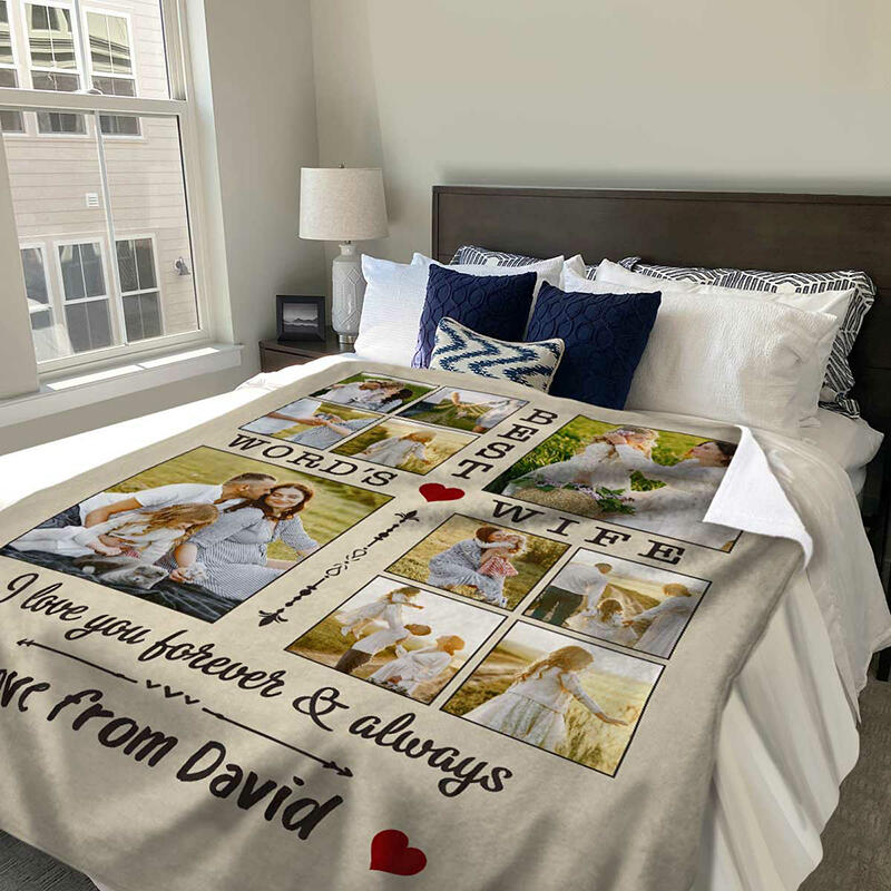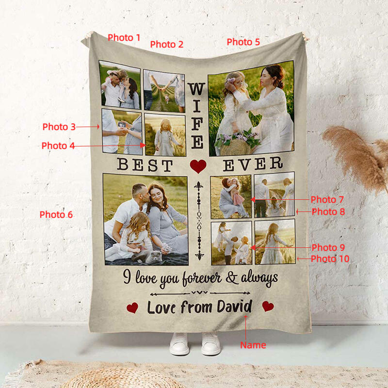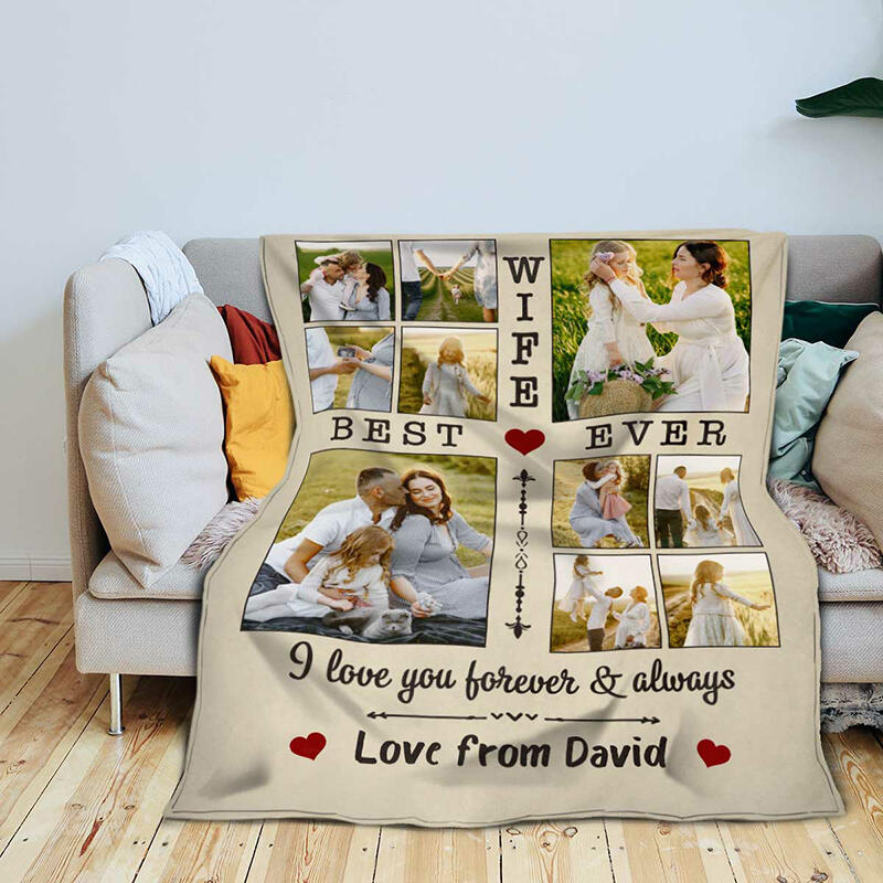 Personalized Picture Blanket with Red Heart Pattern Creative Gift for Wife "I Love You Forever & Always"