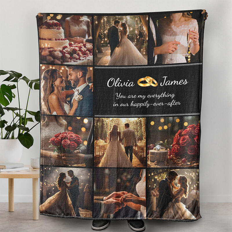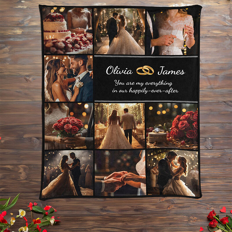 Personalized Picture Blanket with Rings Pattern Romantic Gift for Couples