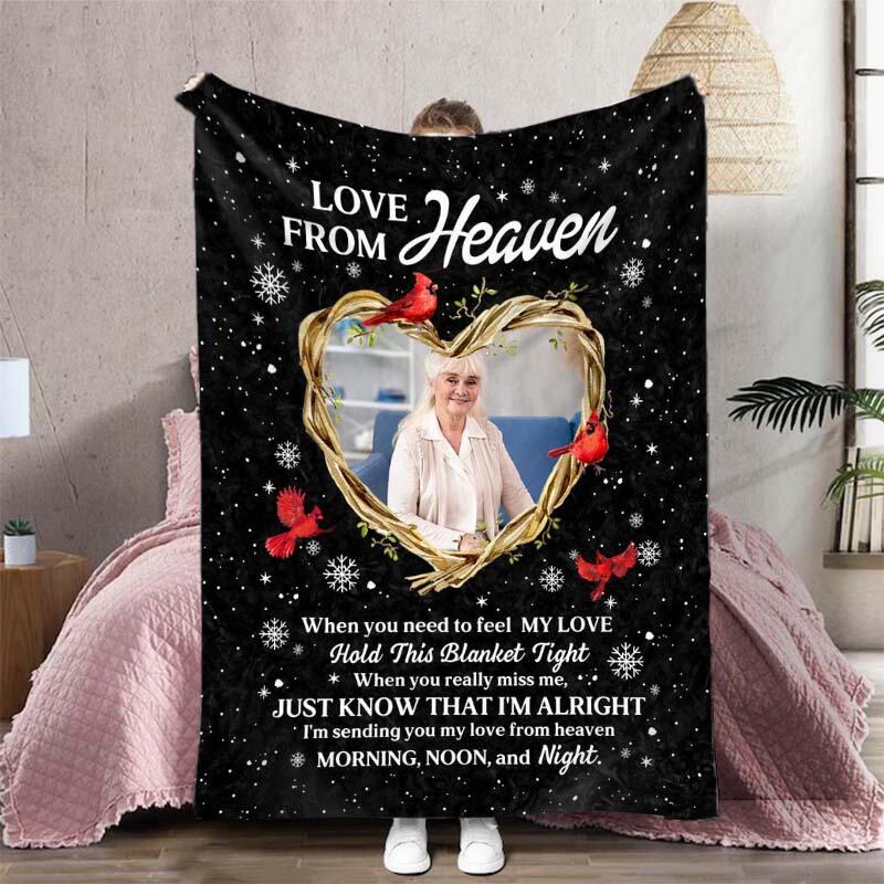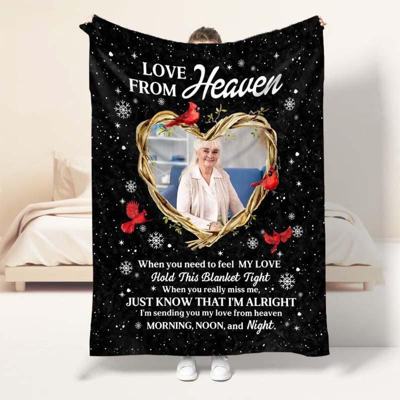 Personalized Picture Blanket with Snowflake And Birds Pattern Memorial Gift for Family