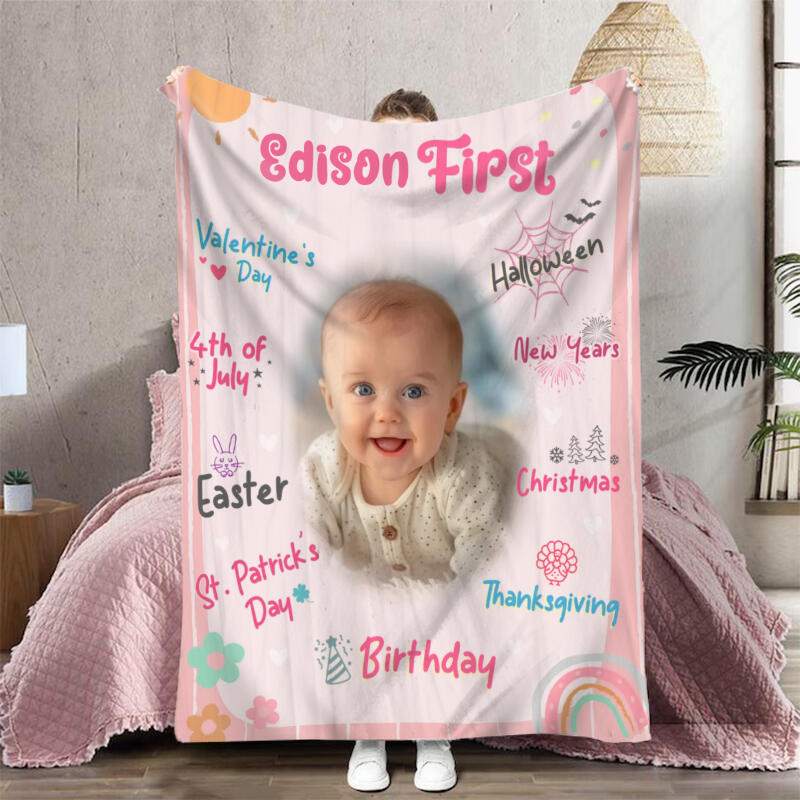 Personalized Picture Blanket with Sun Pattern Creative Present for Kids