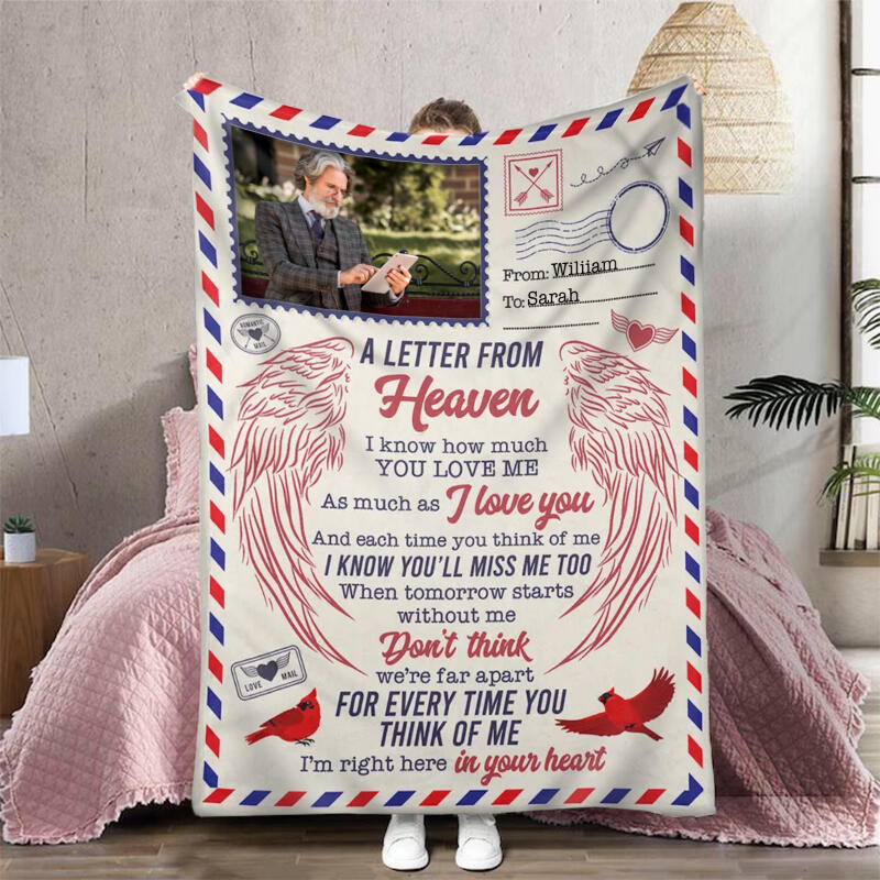 Personalized Picture Blanket with Wings Pattern Creative Present for Family "I'm Right Here"