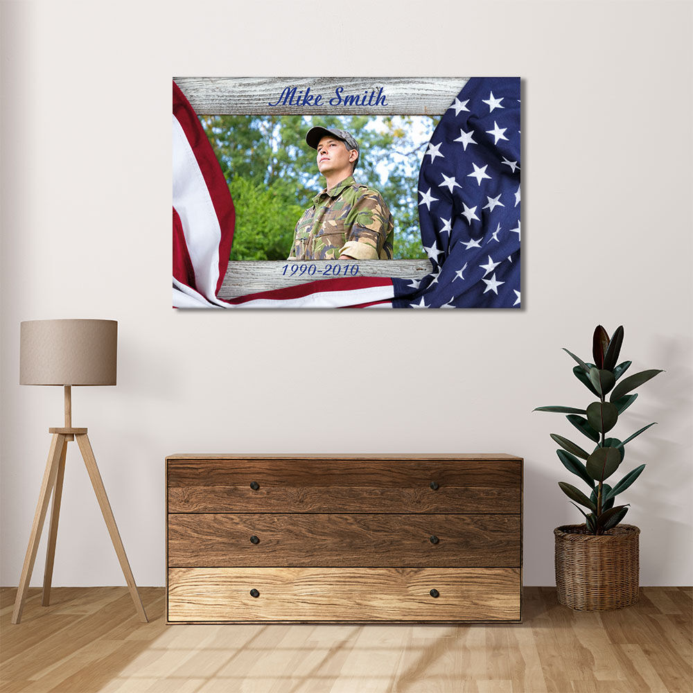 Personalized Picture Canvas Wall Art Flag Background Design Unique Gift for Friend