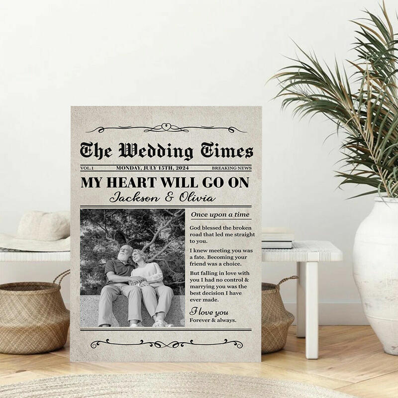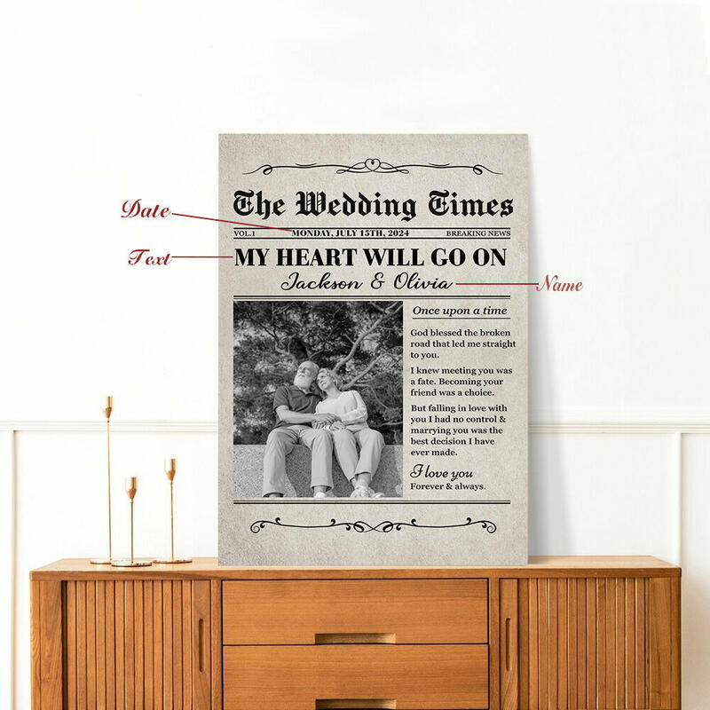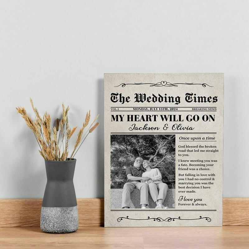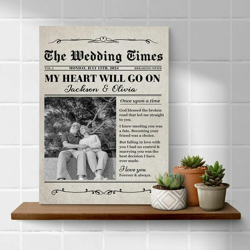 Personalized Picture Canvas Wall Art Newspaper Style Creative Gift for Couples
