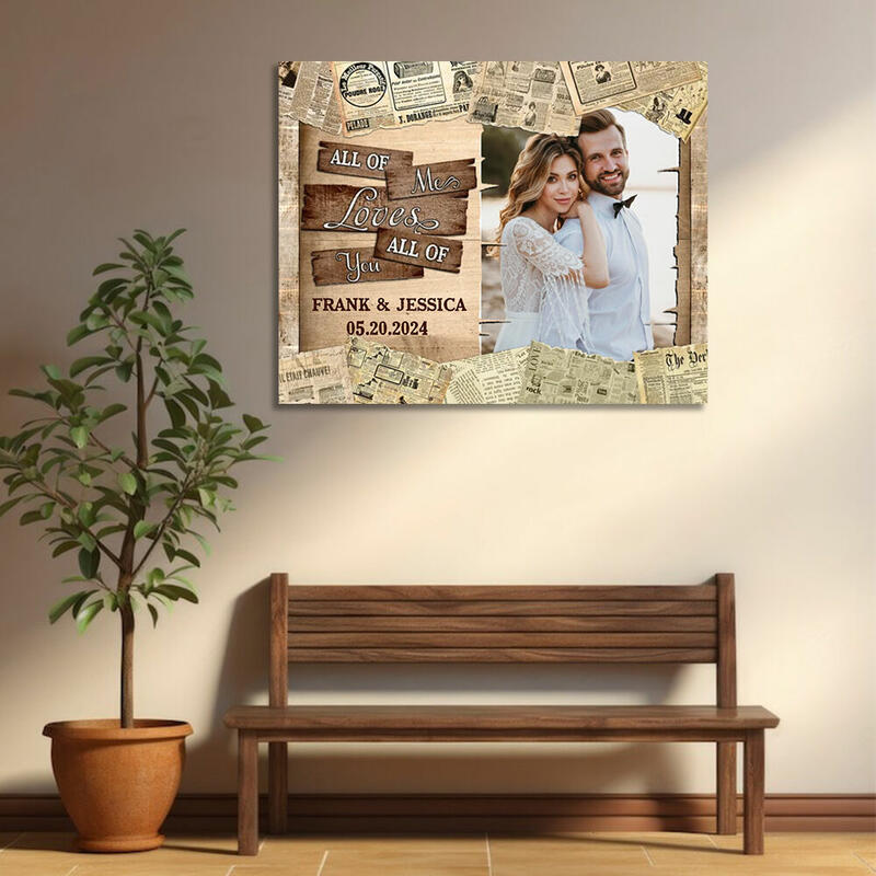 Personalized Picture Canvas Wall Art Retro Gift for Sweet Couples