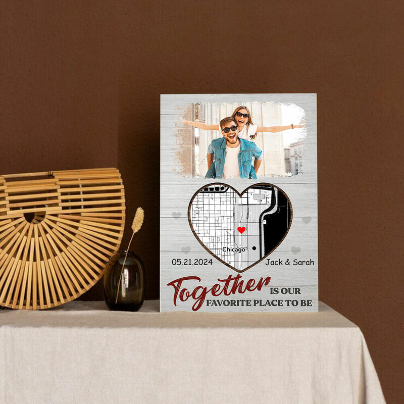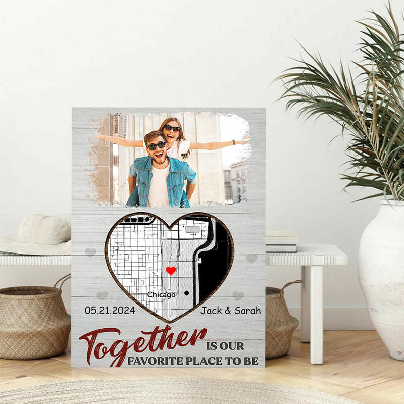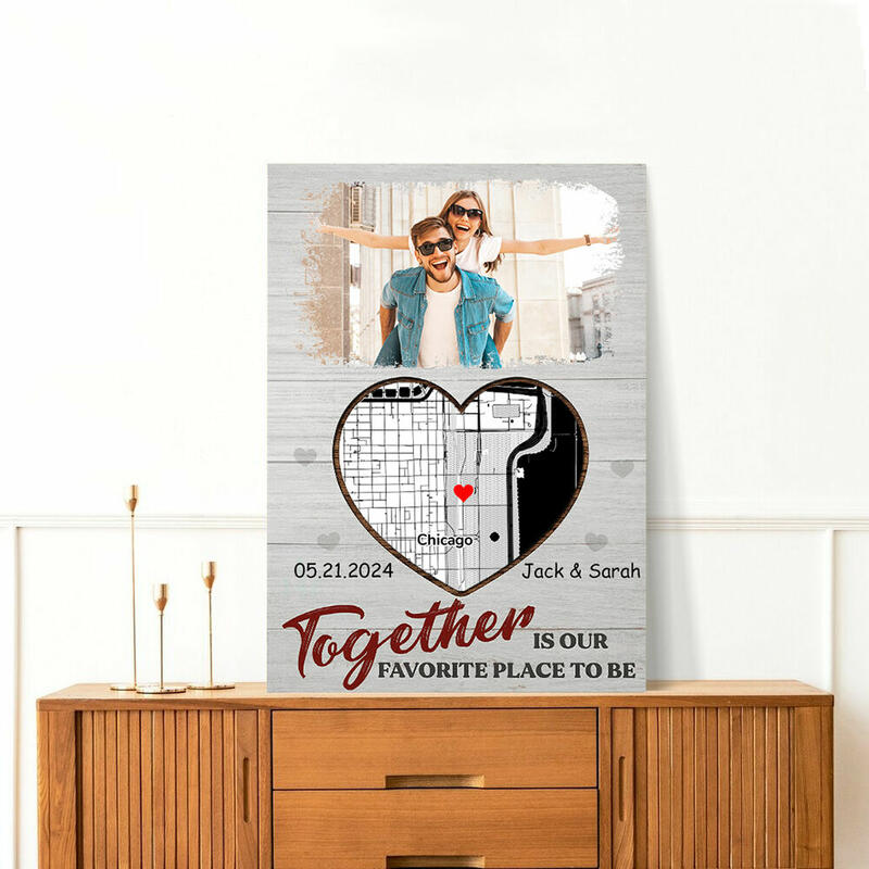 Personalized Picture Canvas Wall Art Romantic Gift for Couples "Together Is Our Favourite Place"