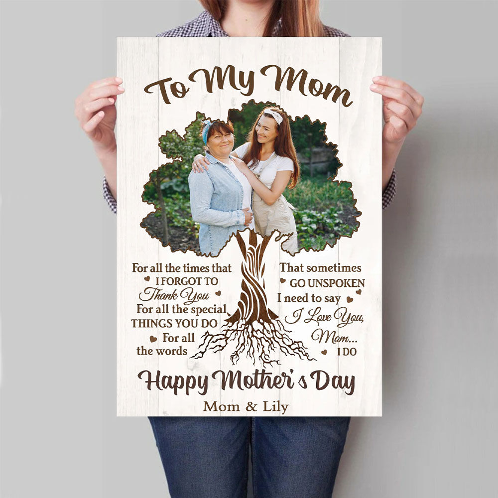 Personalized Picture Canvas Wall Art Tree Design Unique Gift for Mom